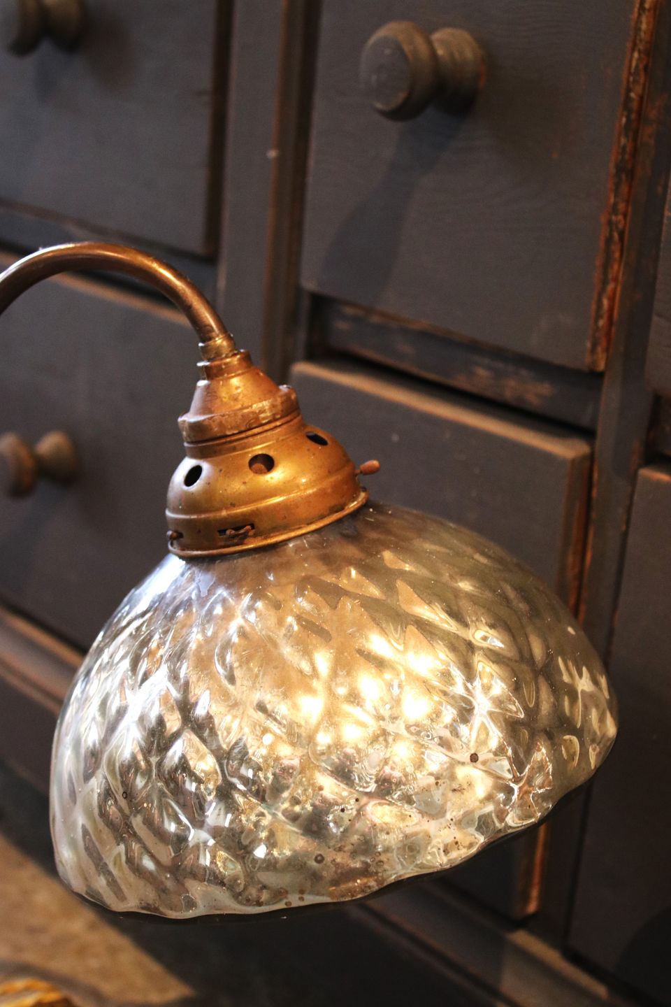 med stor original lampeskærm i vaflet fattigmandssølv