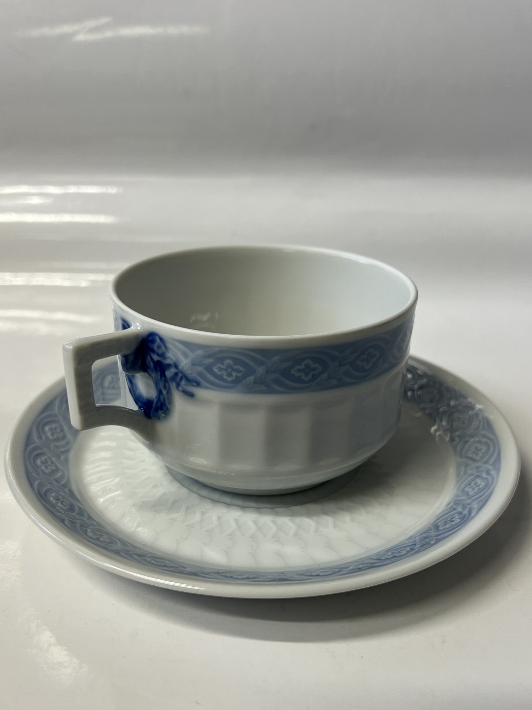 Royal Copenhagen Blå Vifte, ekstra stor morgenkop / chokoladekop med tilhørende underkop.