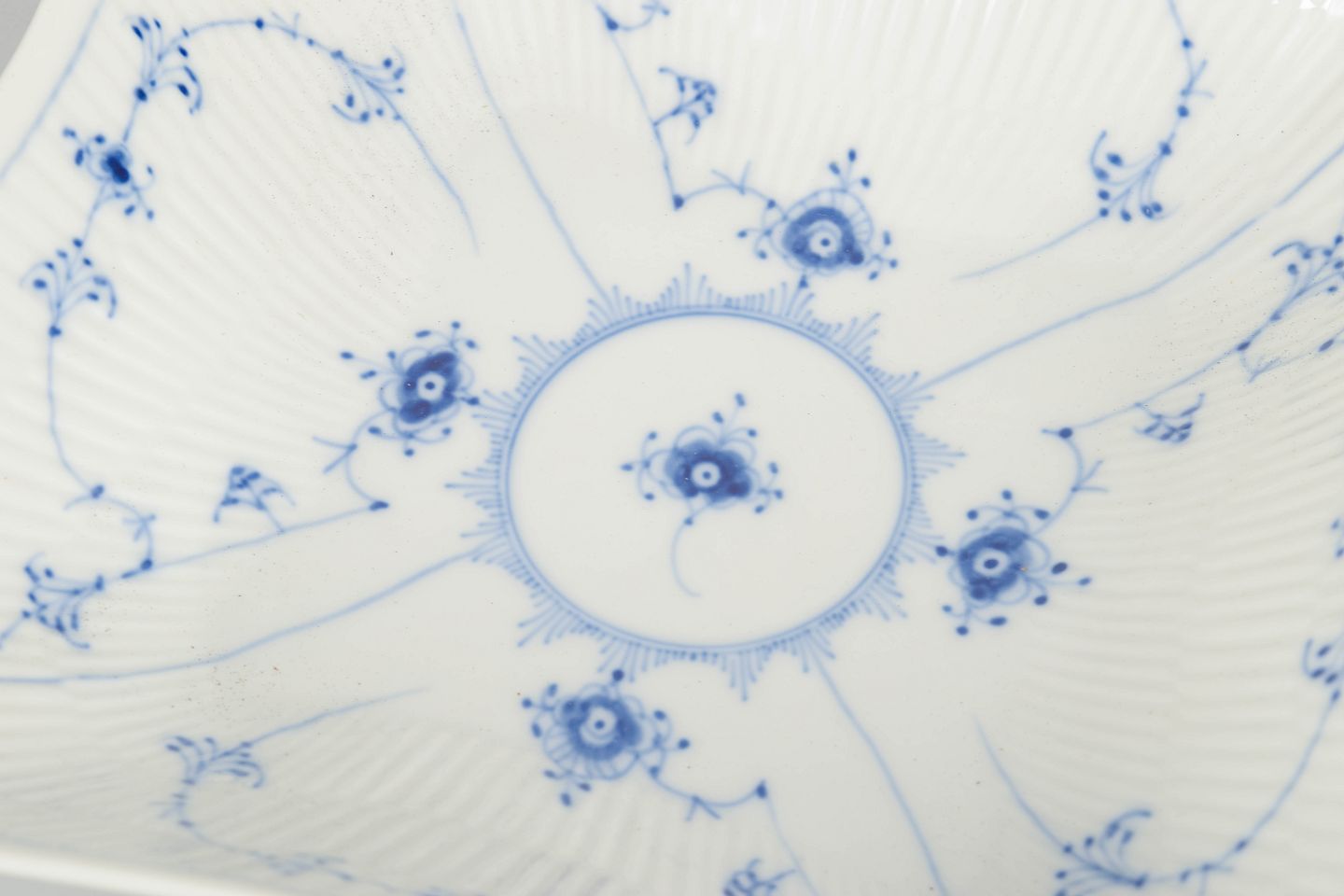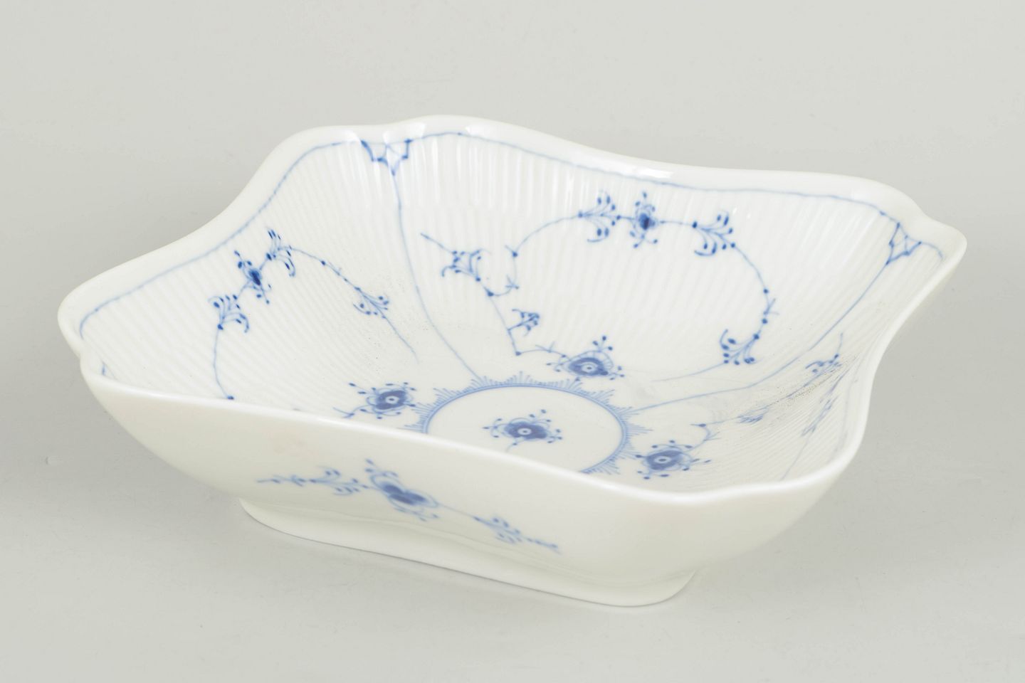 Royal Copenhagen, musselmalet riflet firkantet fad.