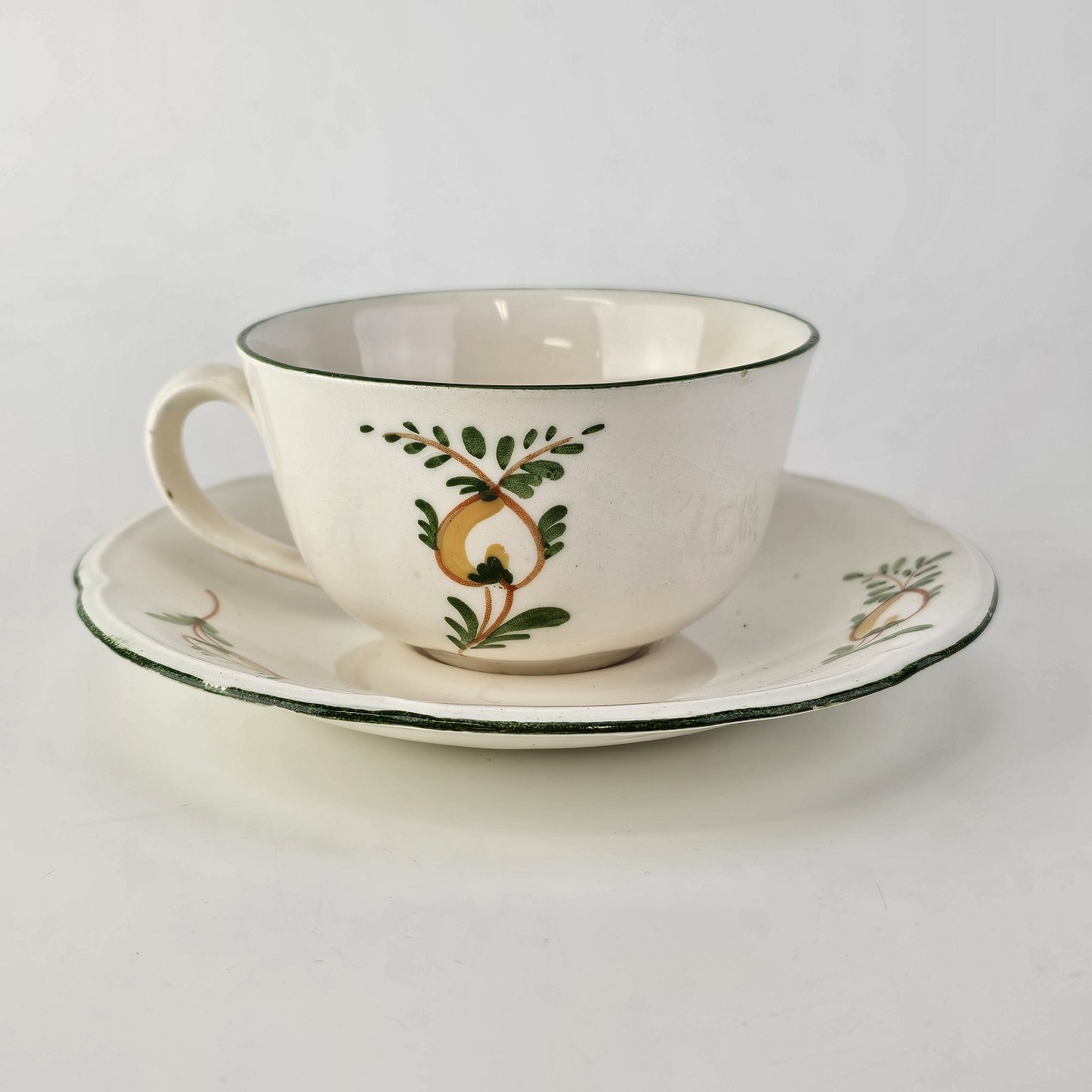 Kaffekop med underkop i fajance fra stellet Maj fremstillet i perioden 1941-1966.