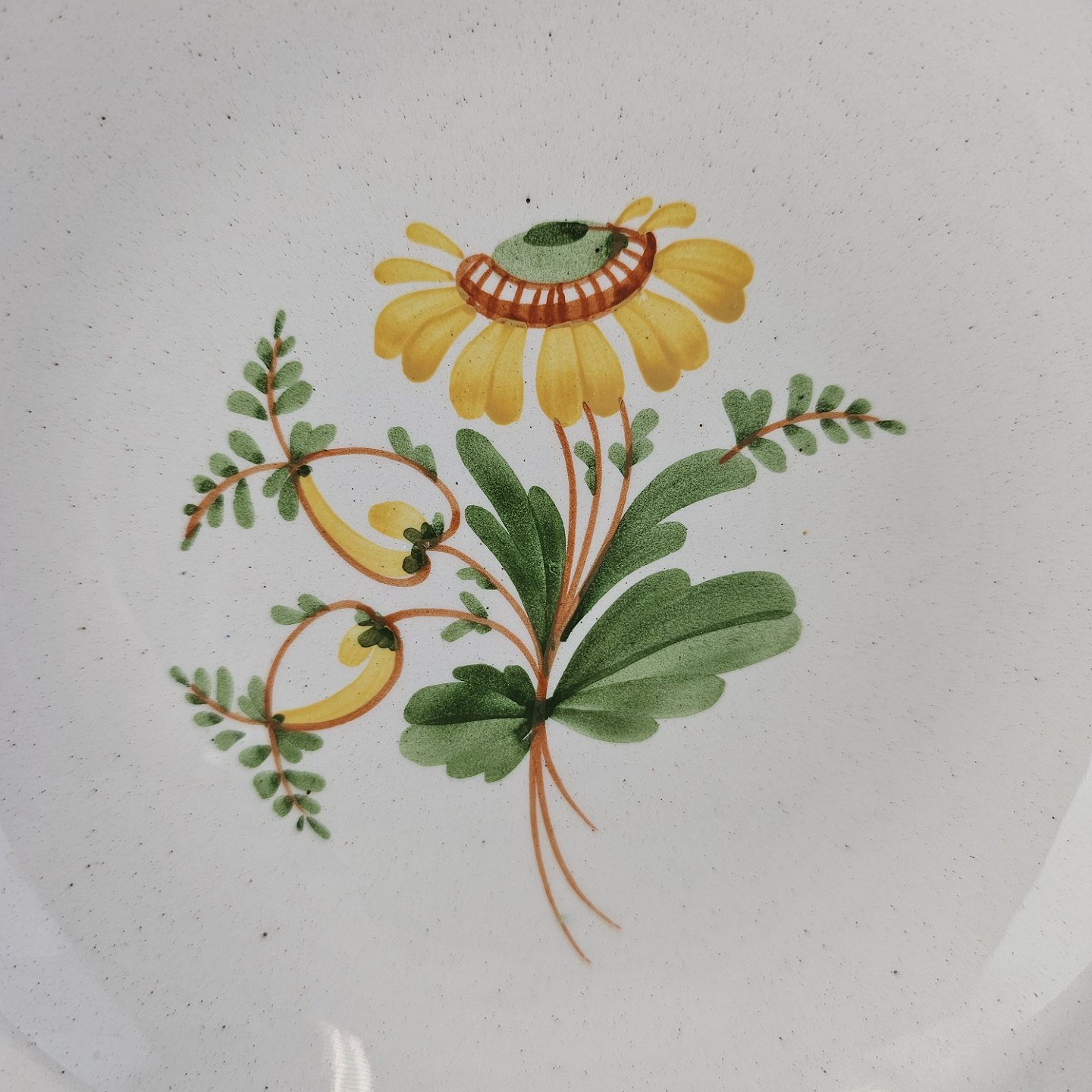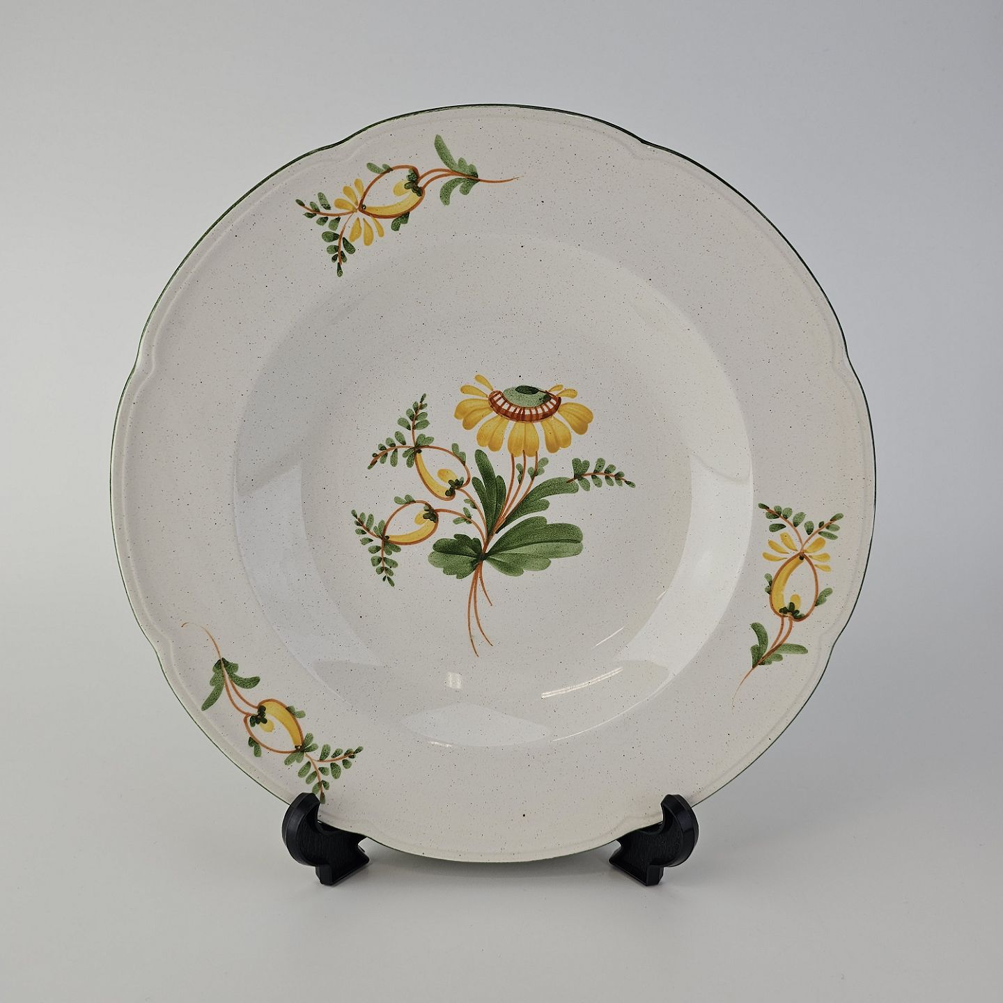 Dyb tallerken i fajance fra stellet Maj fremstillet i perioden 1941-1966.