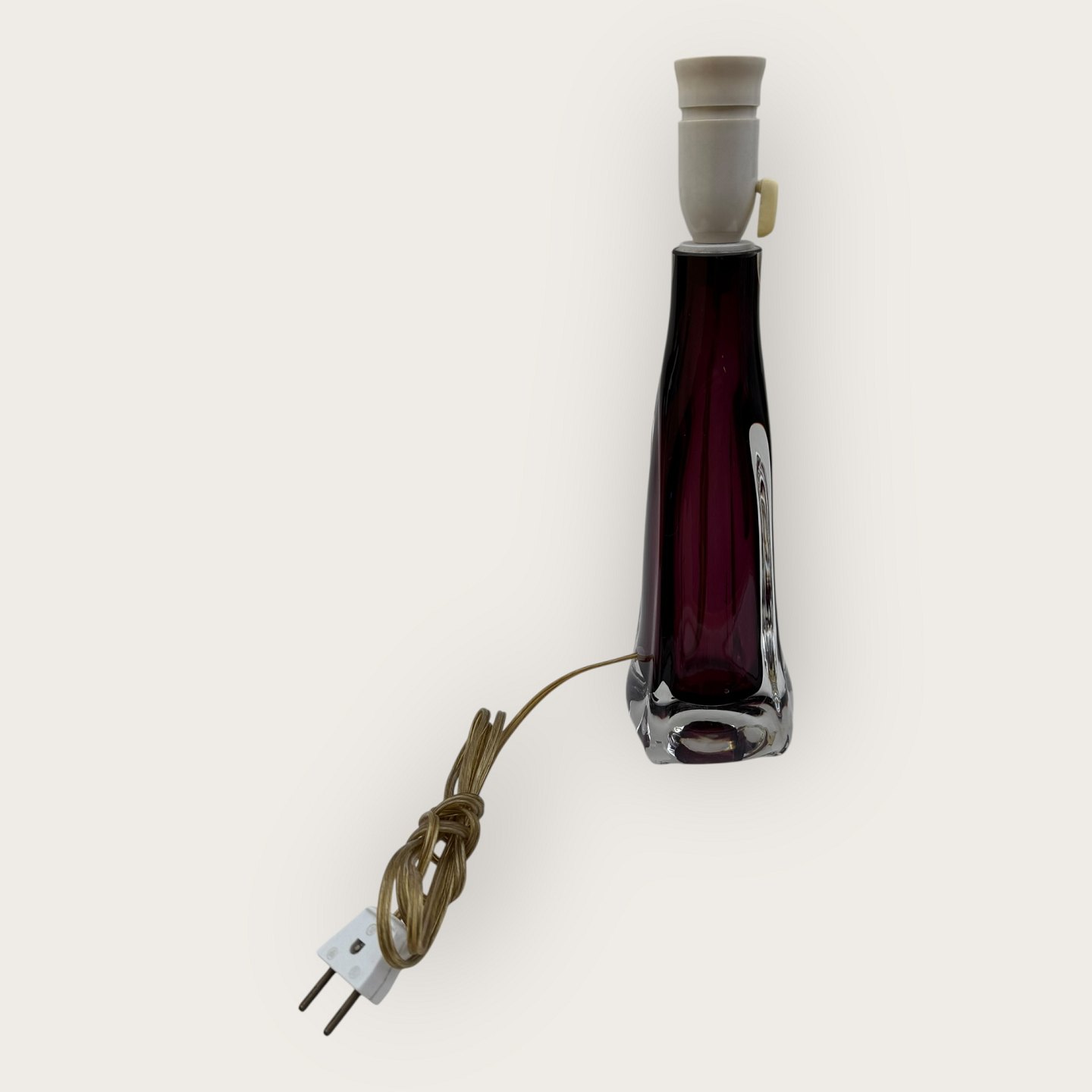 Glas bordlampe, sandsynligvis designet af Carl Fagerlund for Orrefors, utydeligt signeret i bunden (se foto), Højde med fatning ca. 36cm *pæn stand*