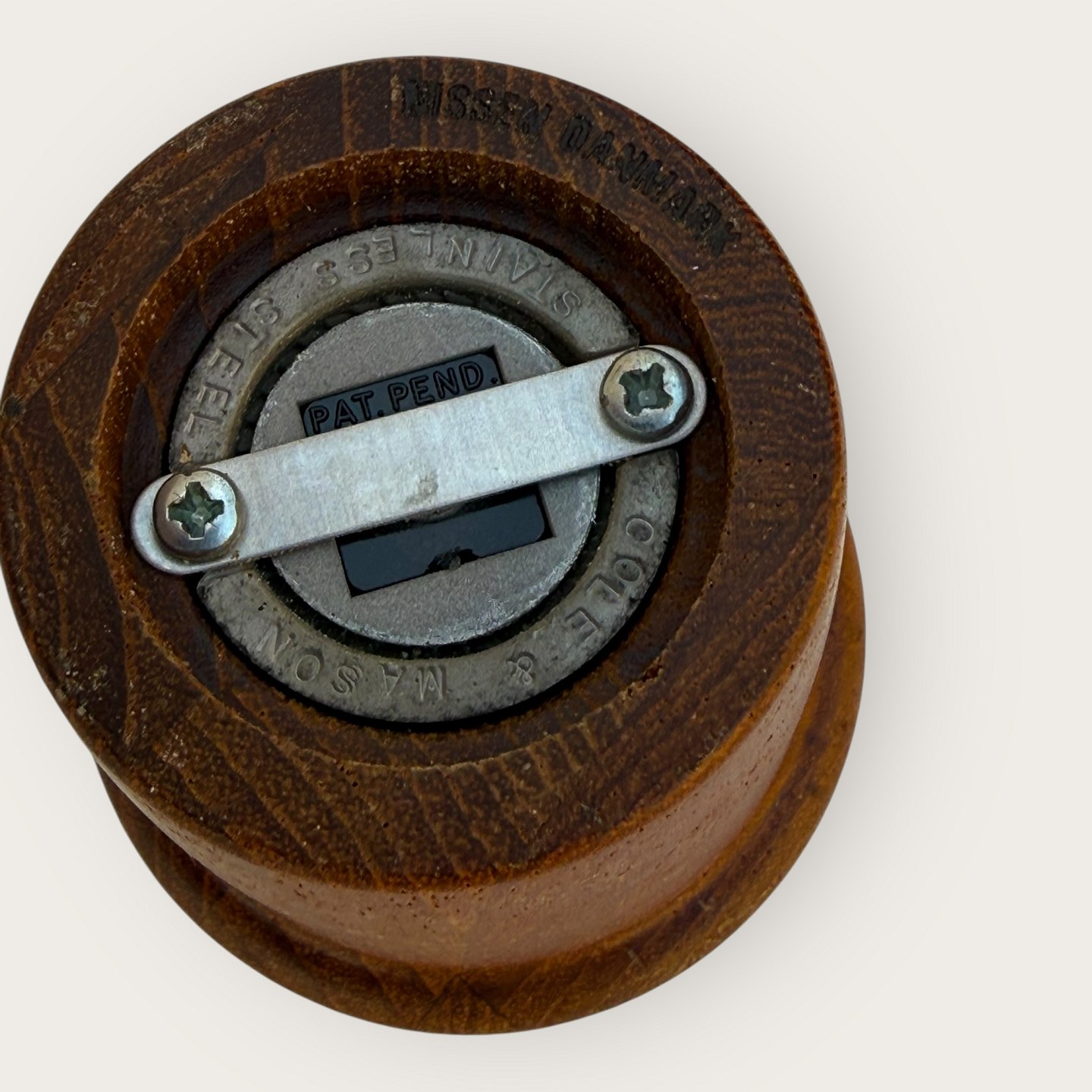 Nissen peberkværn i stavlimet teaktræ fra 1960'erne, højde 14cm *Fin stand