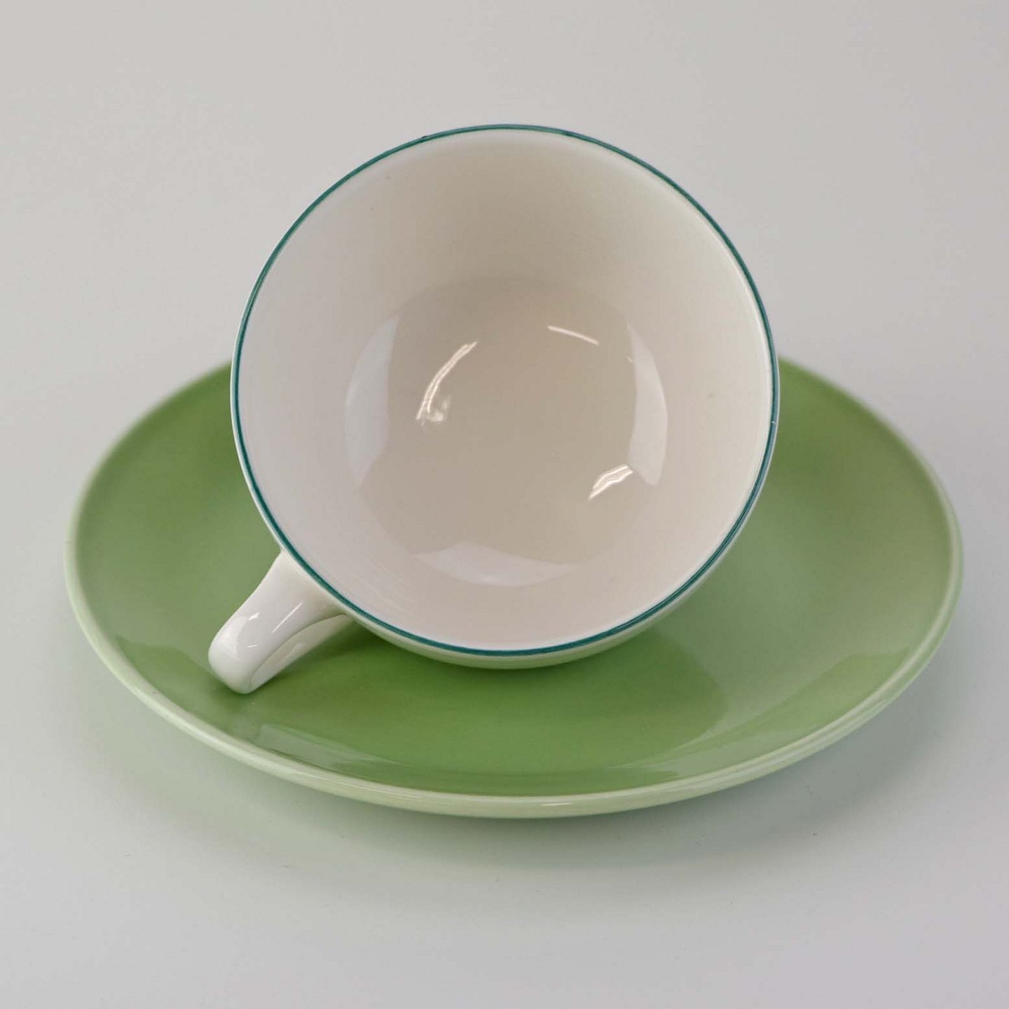Lille morgenkop i fajance med grøn underkop fra stellet 4 All seasons nr. 069 og 073
