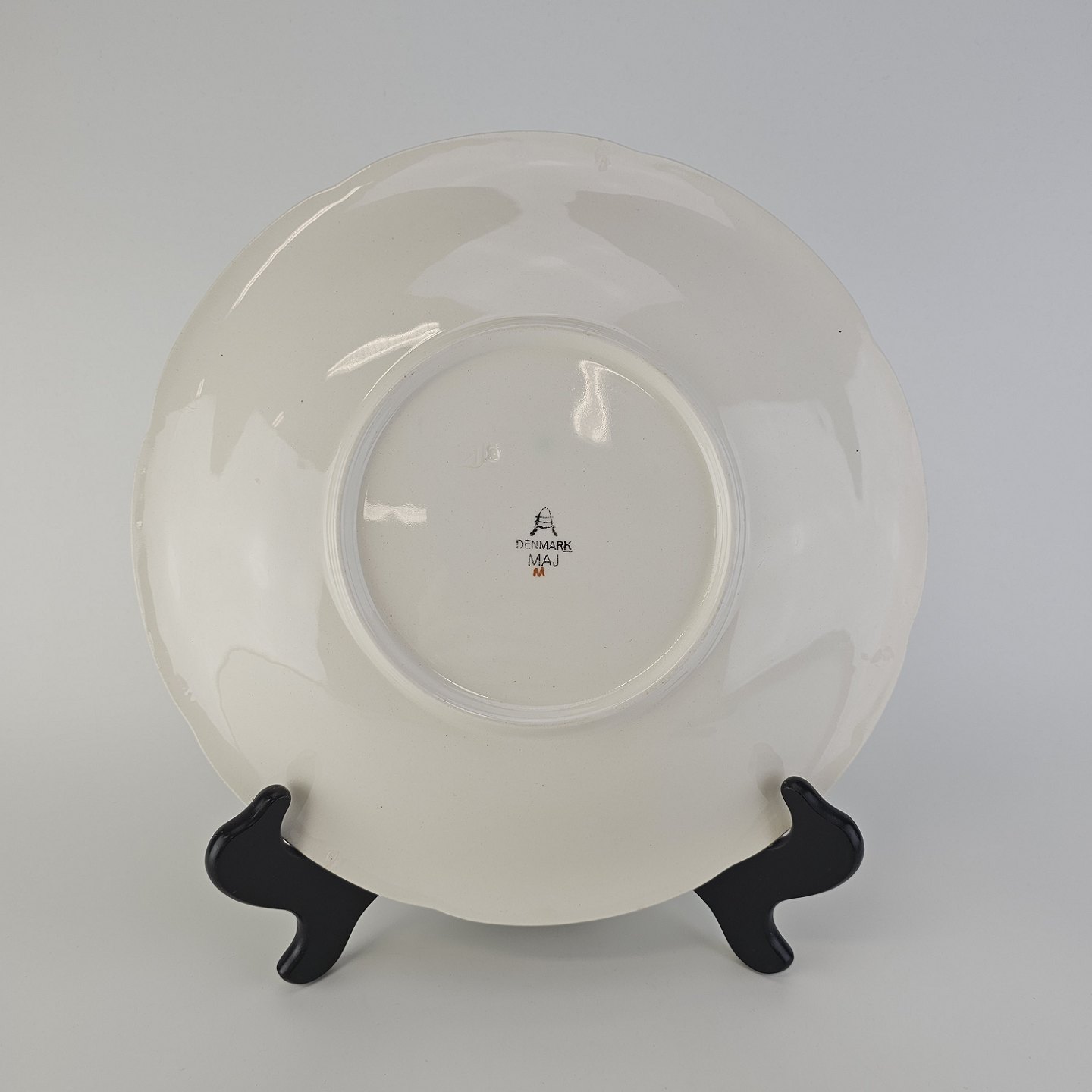 Rundt fad i fajance fra stellet Maj fremstillet i perioden 1941-1966.