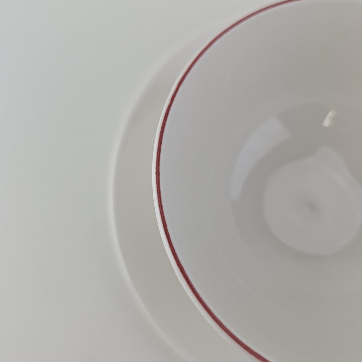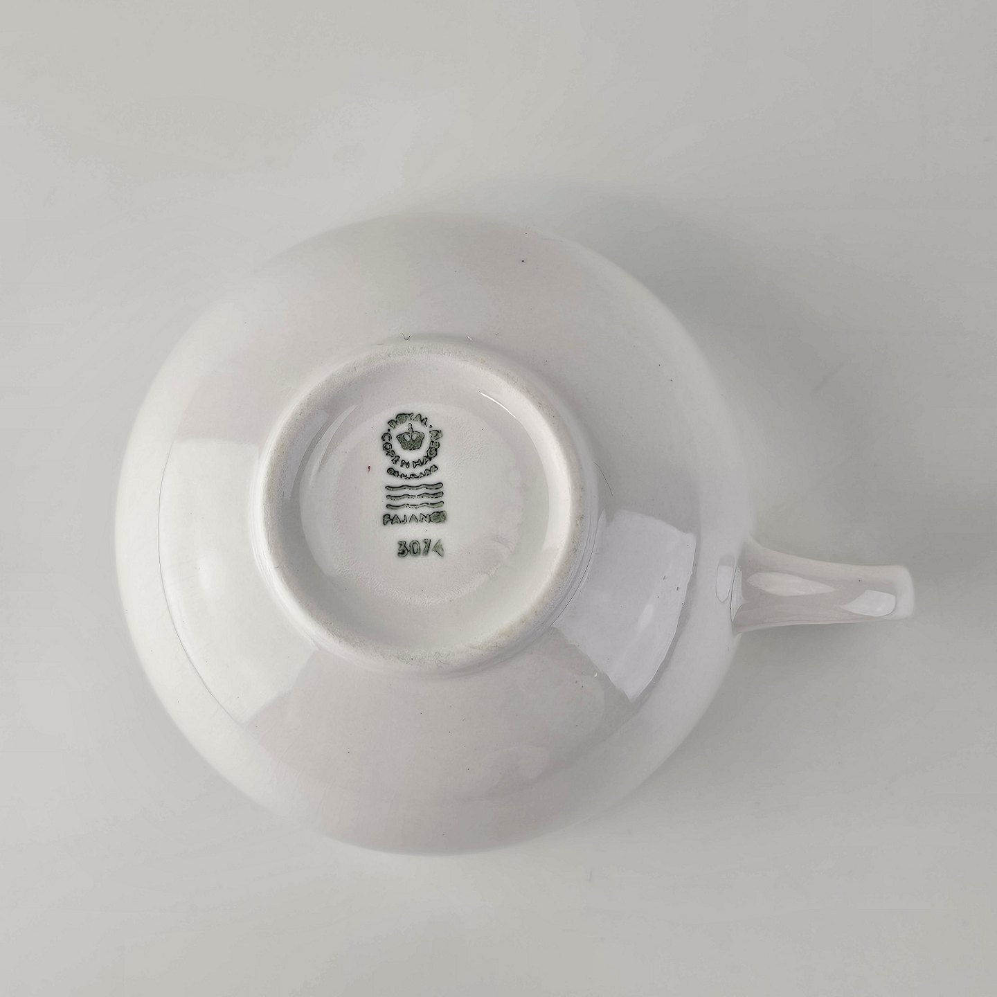 Stor hvid morgenkop med underkop i fajance fra stellet 4 All seasons