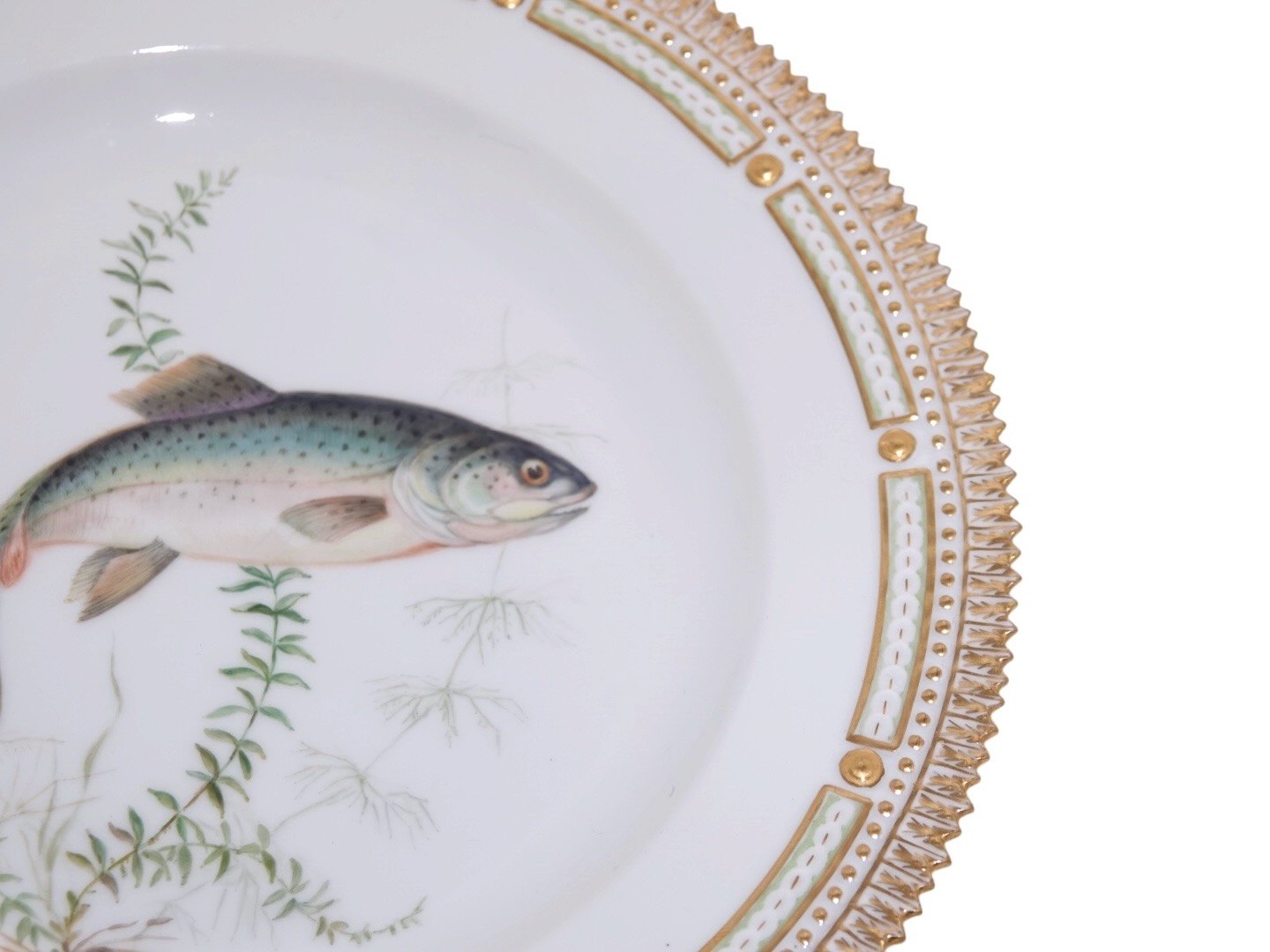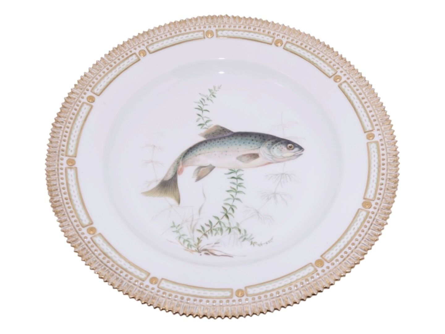 Royal Copenhagen Flora Danica, middagstallerken dekoreret med fisk.