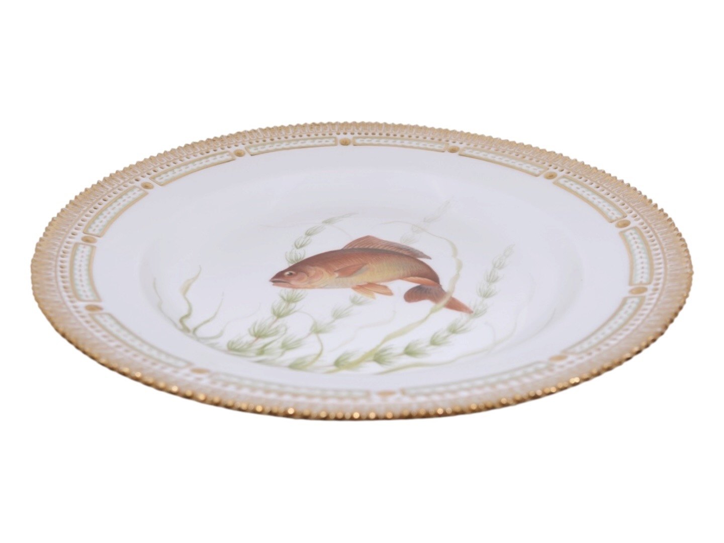 Royal Copenhagen Flora Danica, middagstallerken dekoreret med fisk.