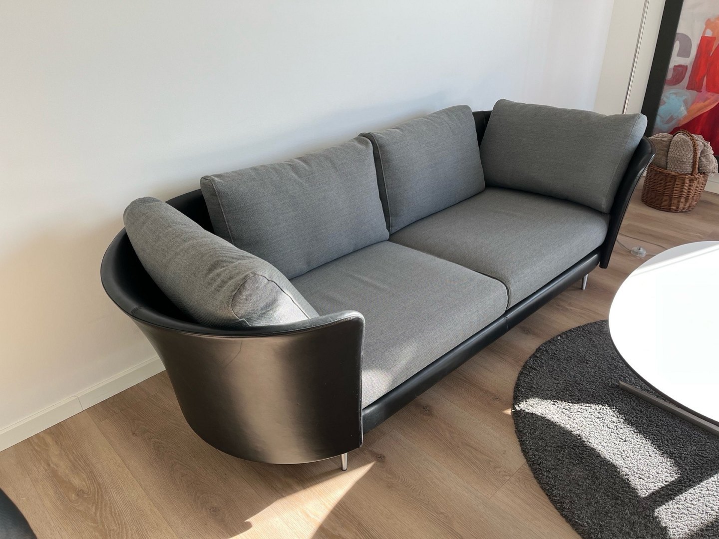 Eksklusiv Mogens Hansen Vascas sofa i sort Preston læder og Hallingdal stof.