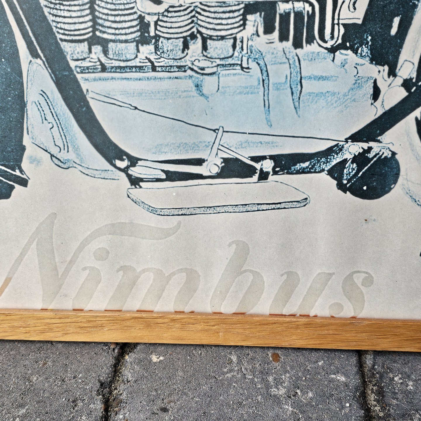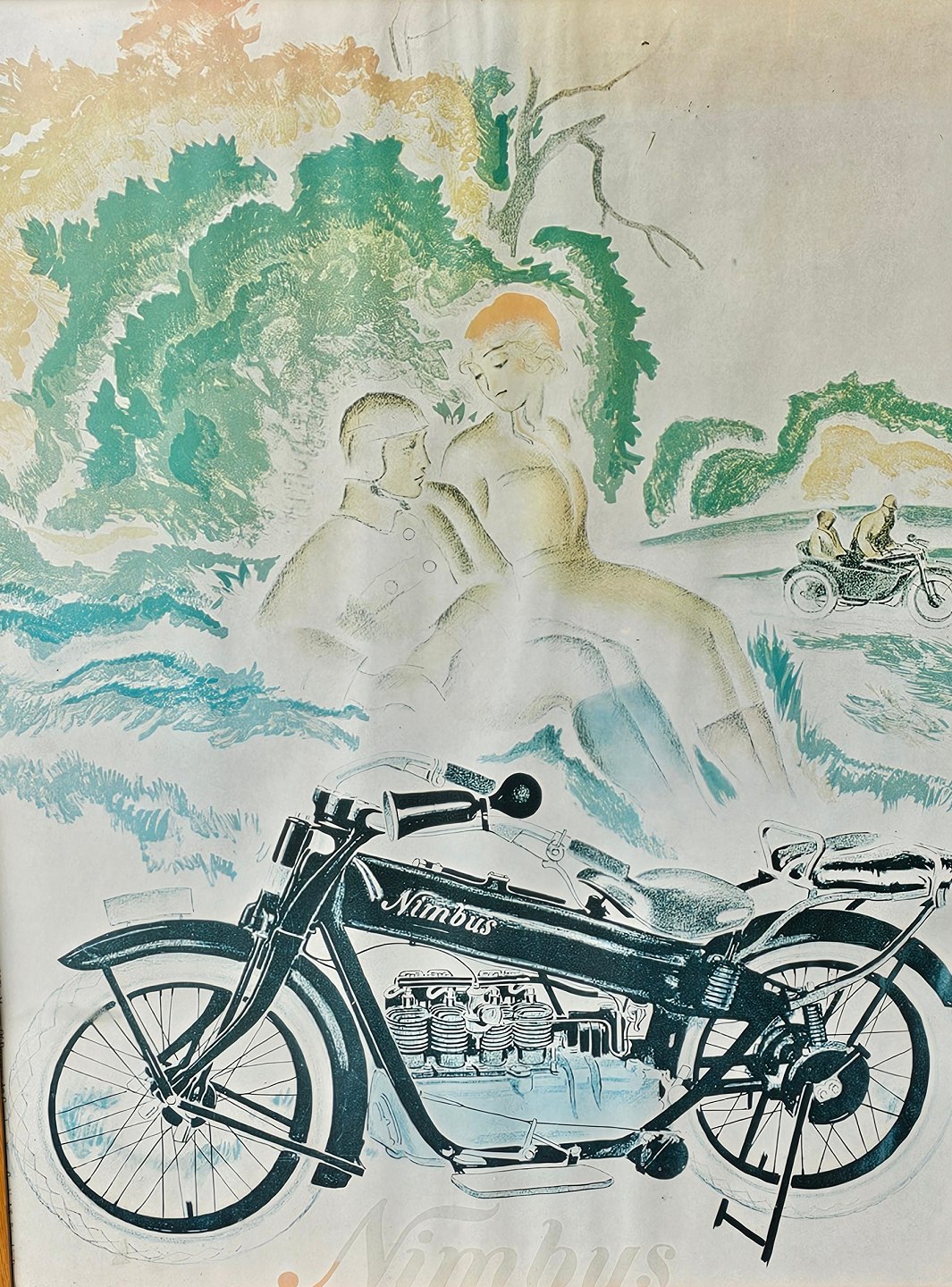 Reklame plakat i lys træramme for Fisker og Nielsens første Nimbus model