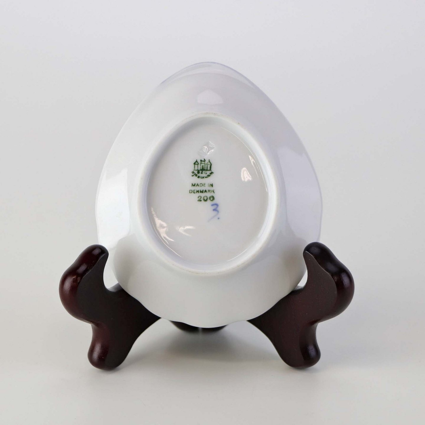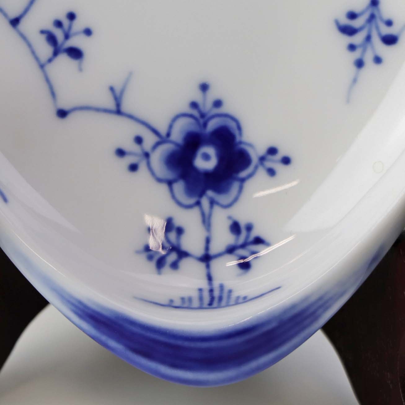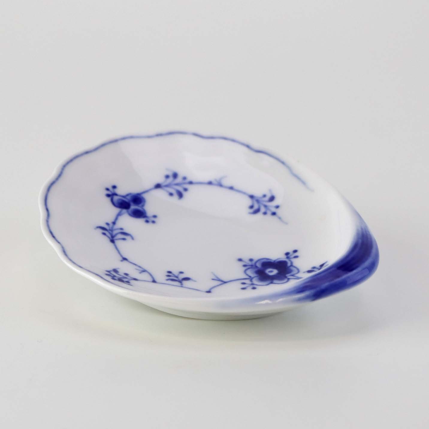 Muslingeformet kuvertasiet i porcelæn fra stellet Blåmalet. Nr. 200
