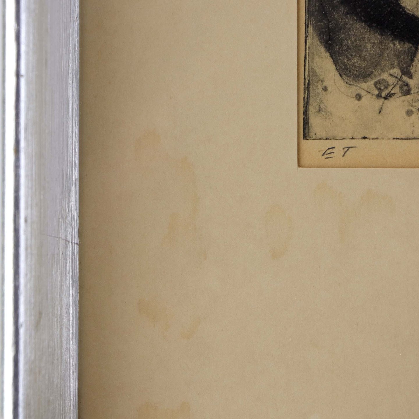 Litografi fra 1967 i passepartout ramme med sort hvidt naturmotiv af to fugle