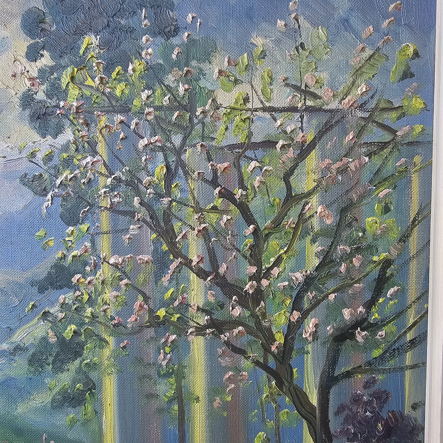 Oliemaleri på lærred monteret i træramme med naturmotiv