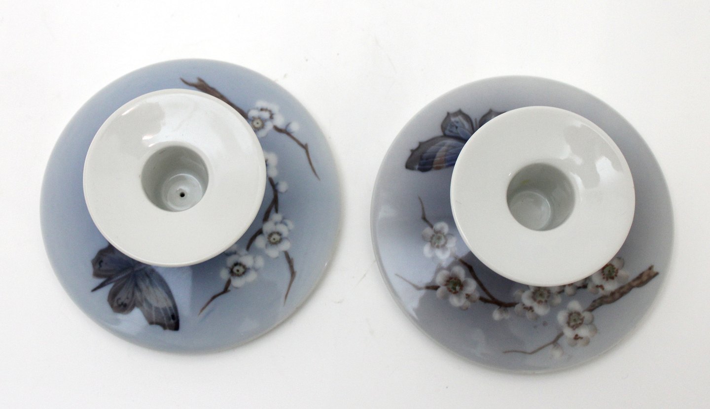 Lysestager med blomstergren og sommerfugl, Royal Copenhagen