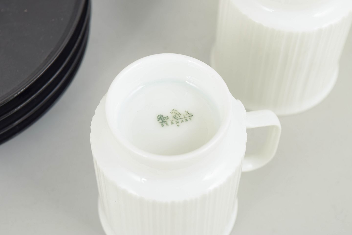 Elegante espressokopper i porcelæn med tilhørende underkopper, udført i et enkelt og funktionalistisk formsprog karakteristisk for Tapio Wirkkalas arbejde for Rosenthal i 1980’erne.