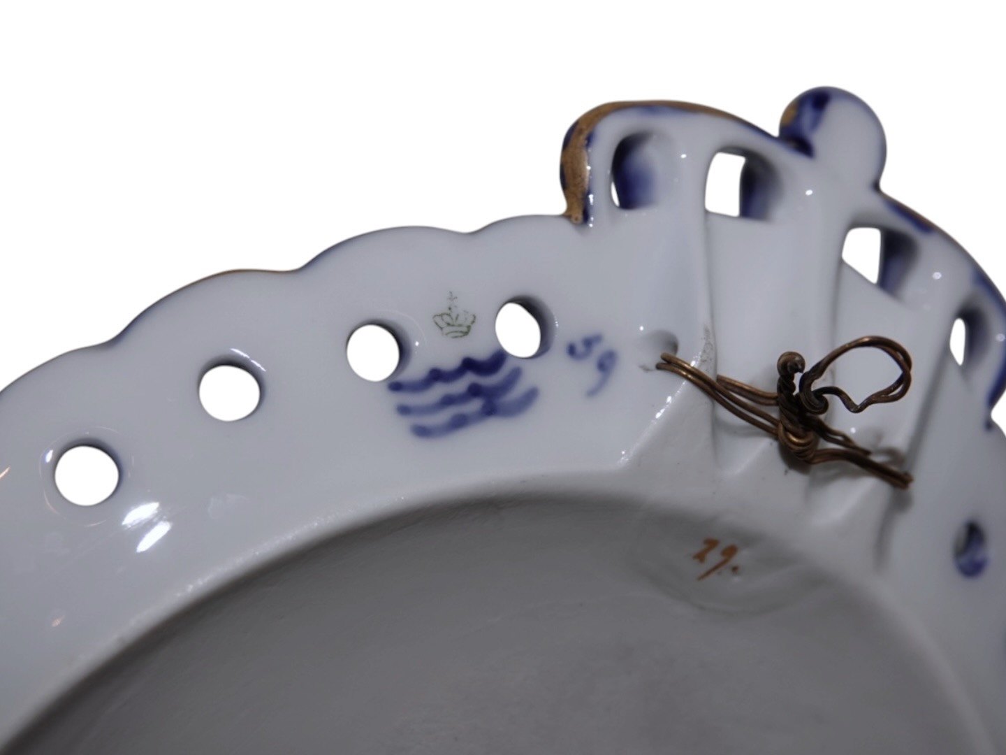 Royal Copenhagen Mindeplatte fra 1898 med guldkant.