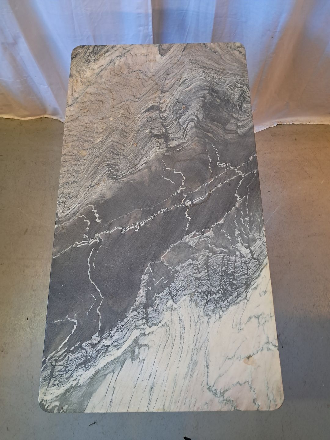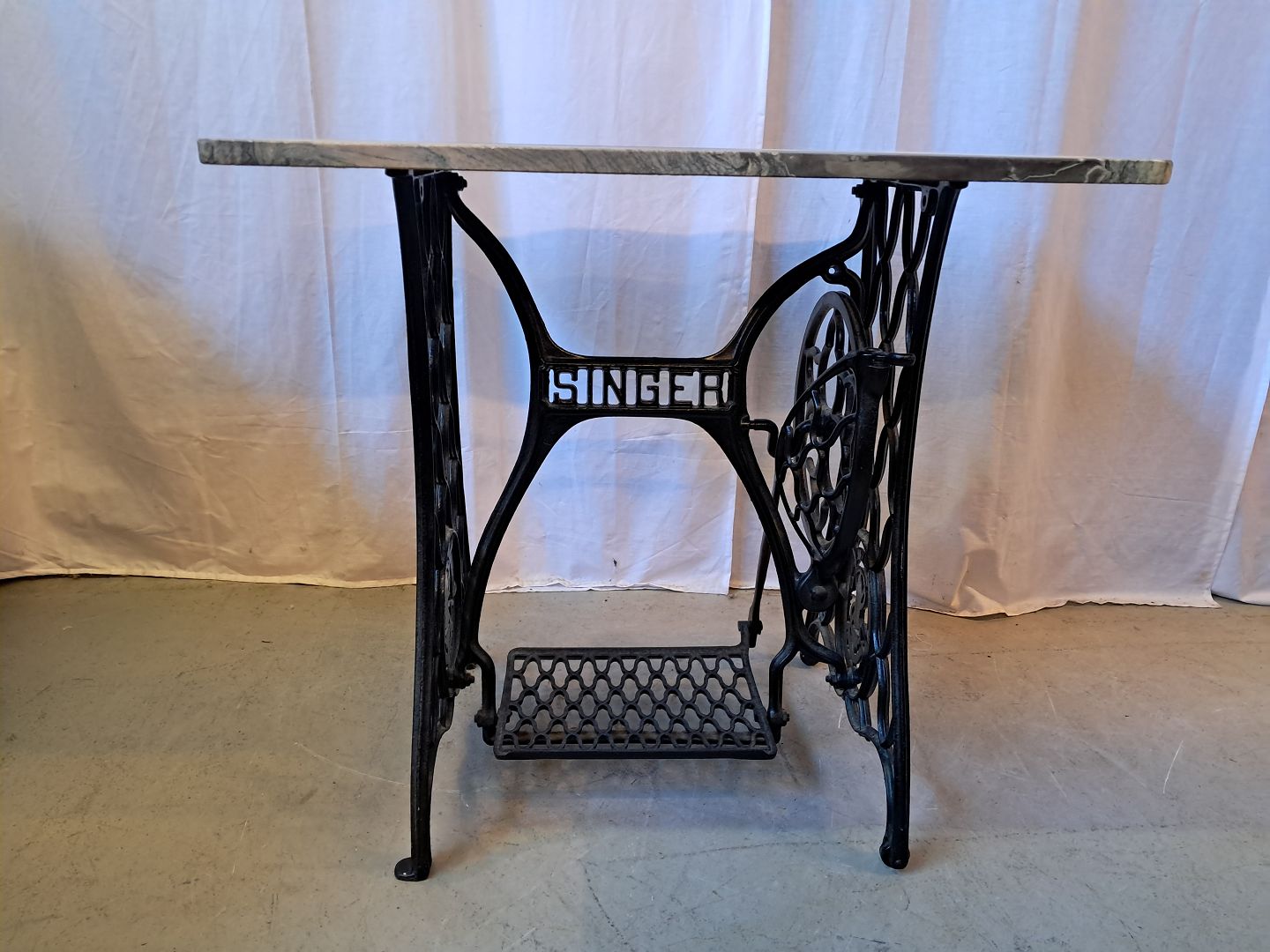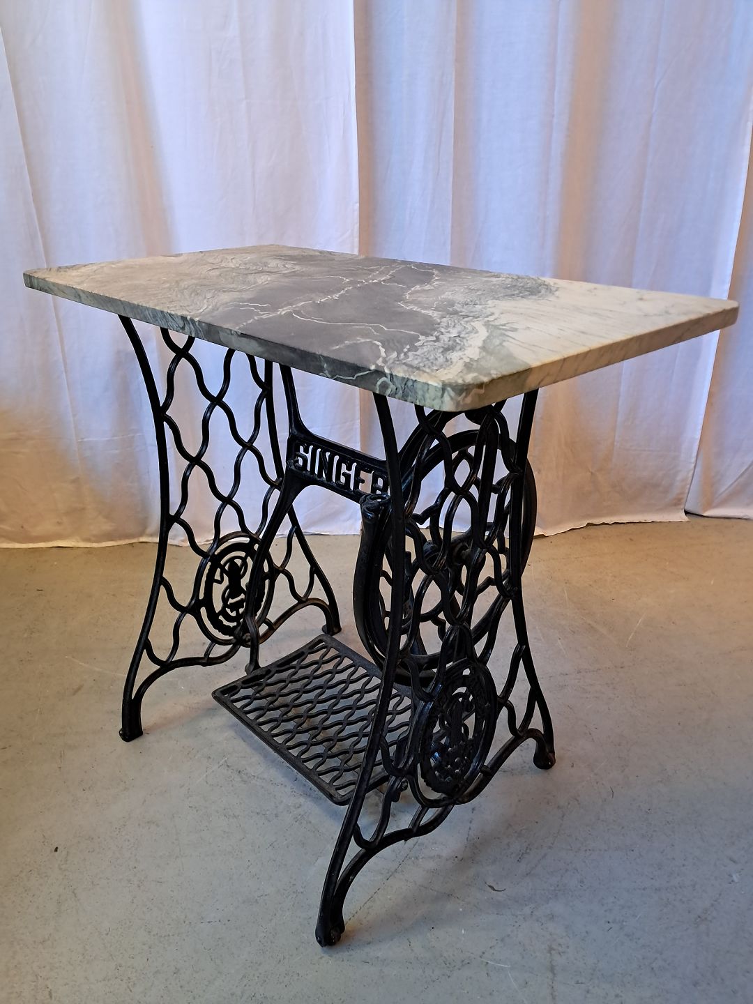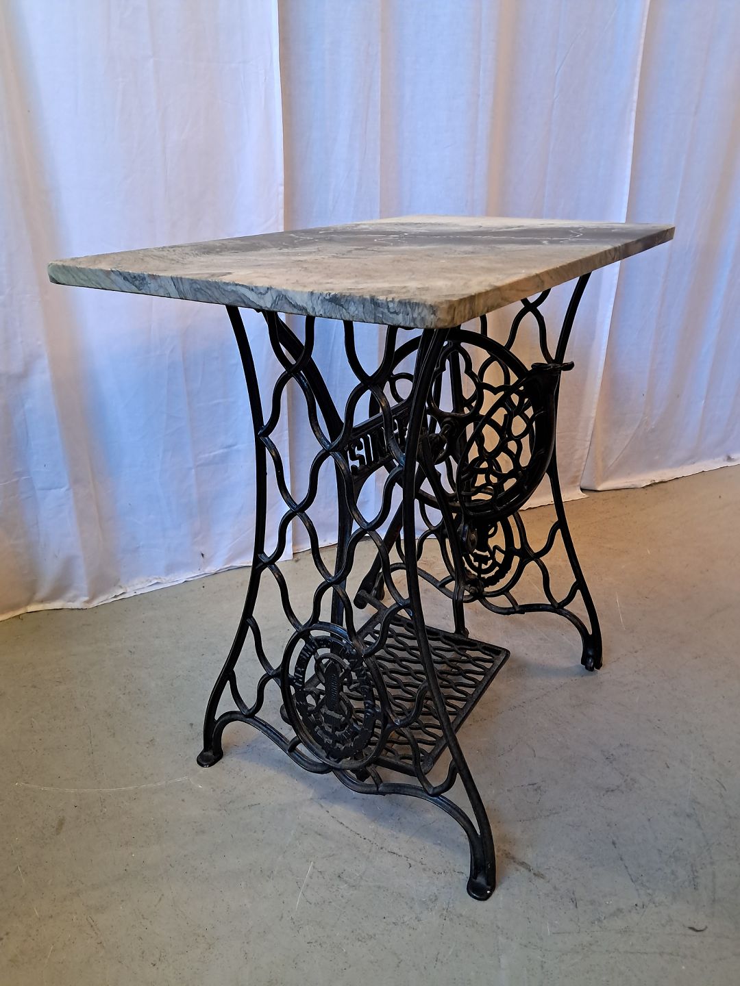 Symaskinestel fra Singer m. Marmorplade på.