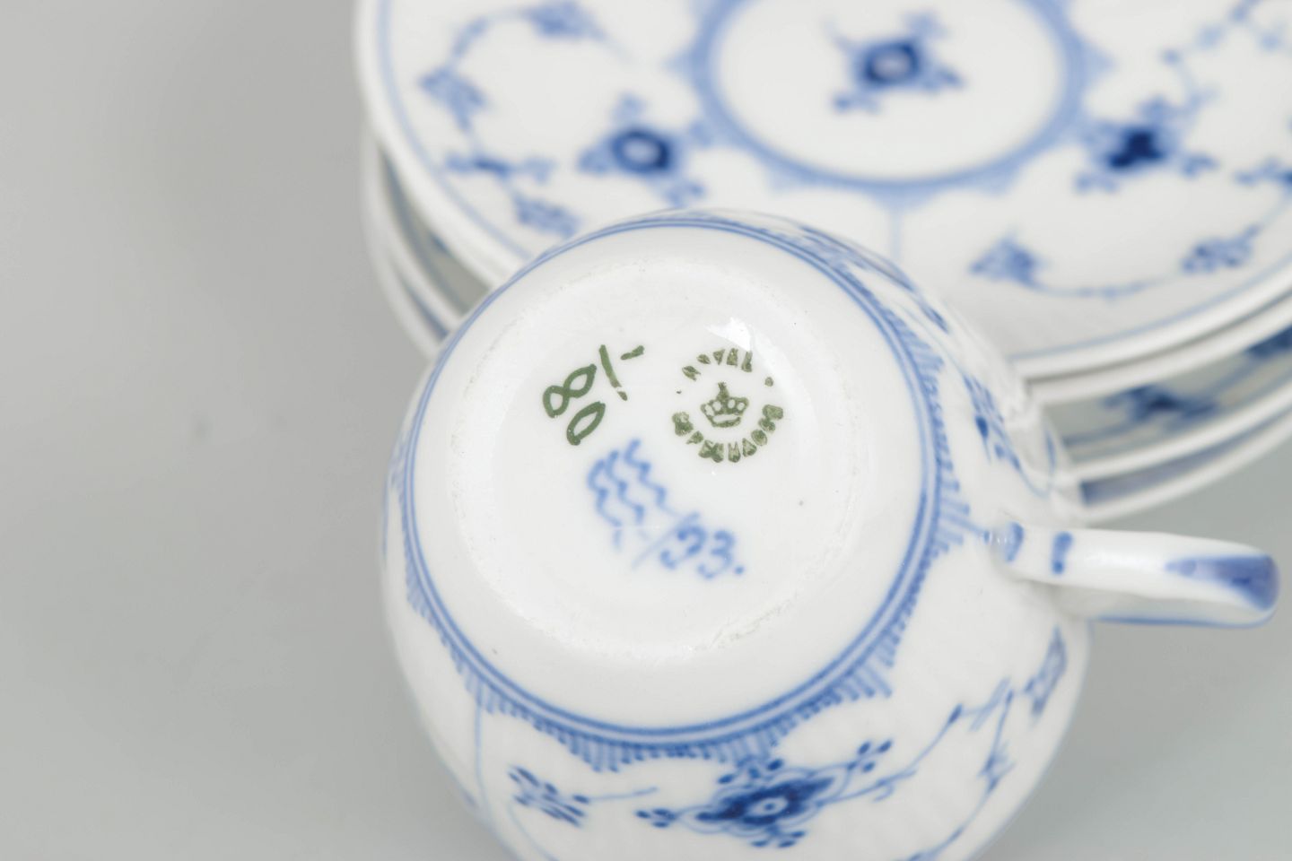 Royal Copenhagen blev grundlagt i 1775 og er en af Danmarks mest anerkendte porcelænsfabrikker. Fabrikken er især kendt for sine håndmalede dekorationer i underglasurblå, herunder det klassiske Musselmalet Riflet stel, som har været i kontinuerlig produktion siden 1700-tallet.