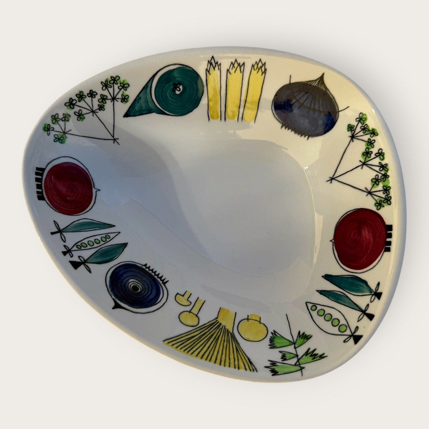 Rørstrand, Picknick, skål i afrundet trekantet form, Mål 20,5x17,5cm, 6cm høj, Design Marianne Westmann *Pæn stand*