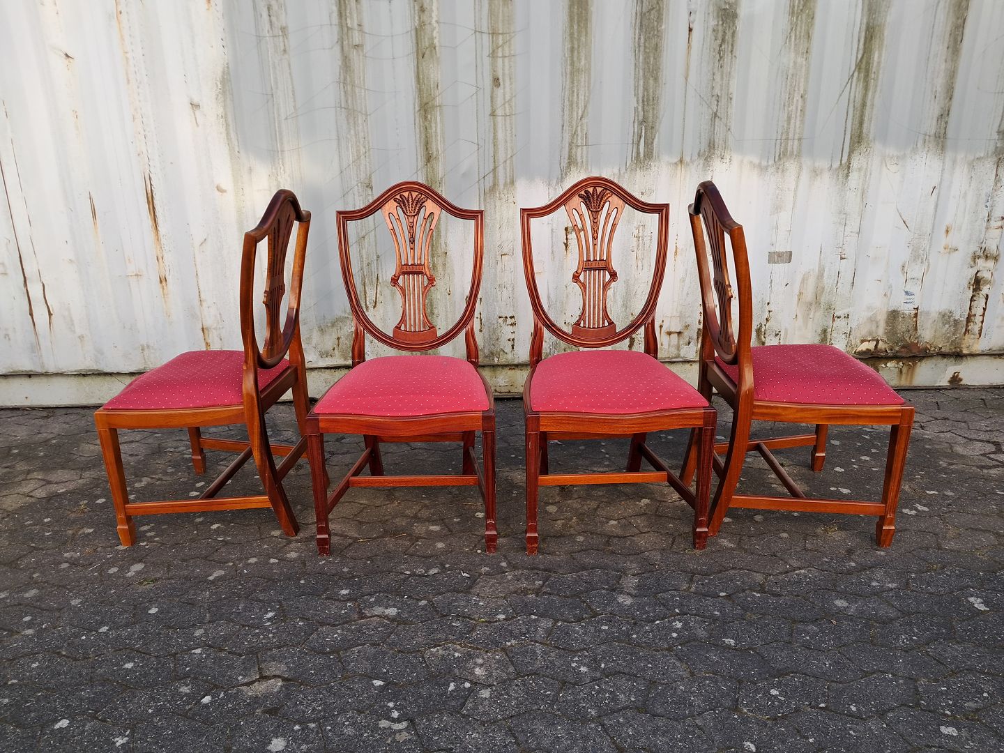 4 Stole i masstivt mahogni og bøgetræ, fra 1990erne.