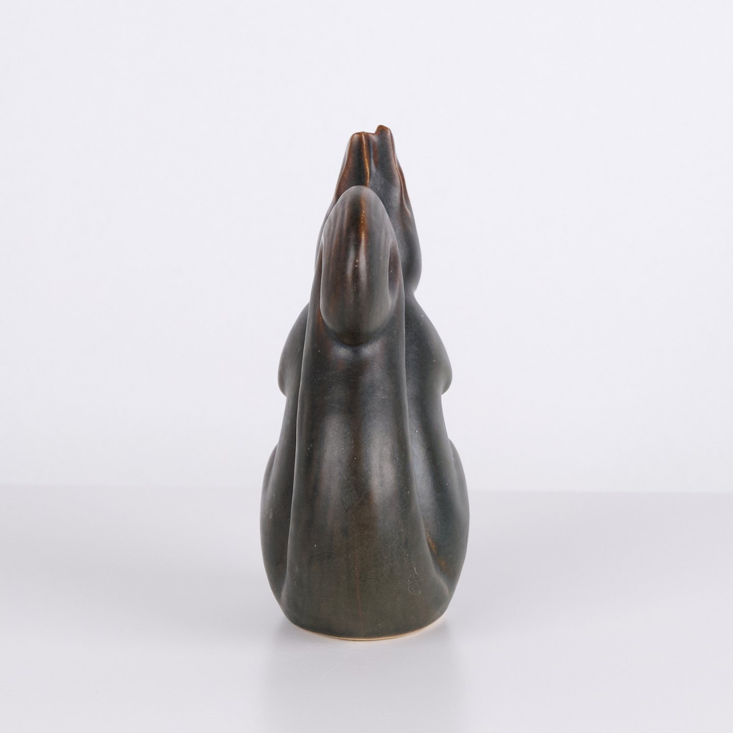Knud Basse Egern Figur i Mørk Keramik med Nød, Dansk Design 1960erne