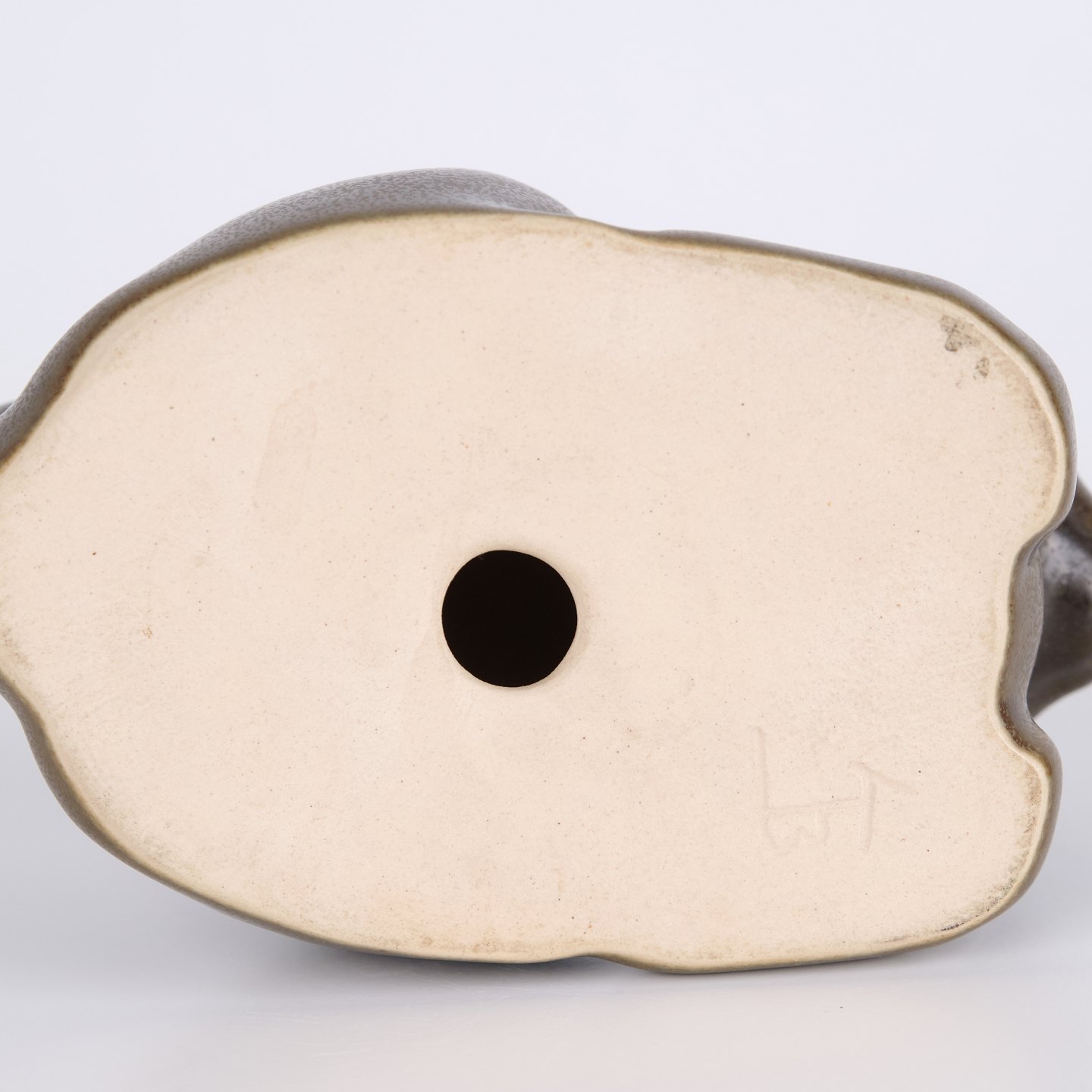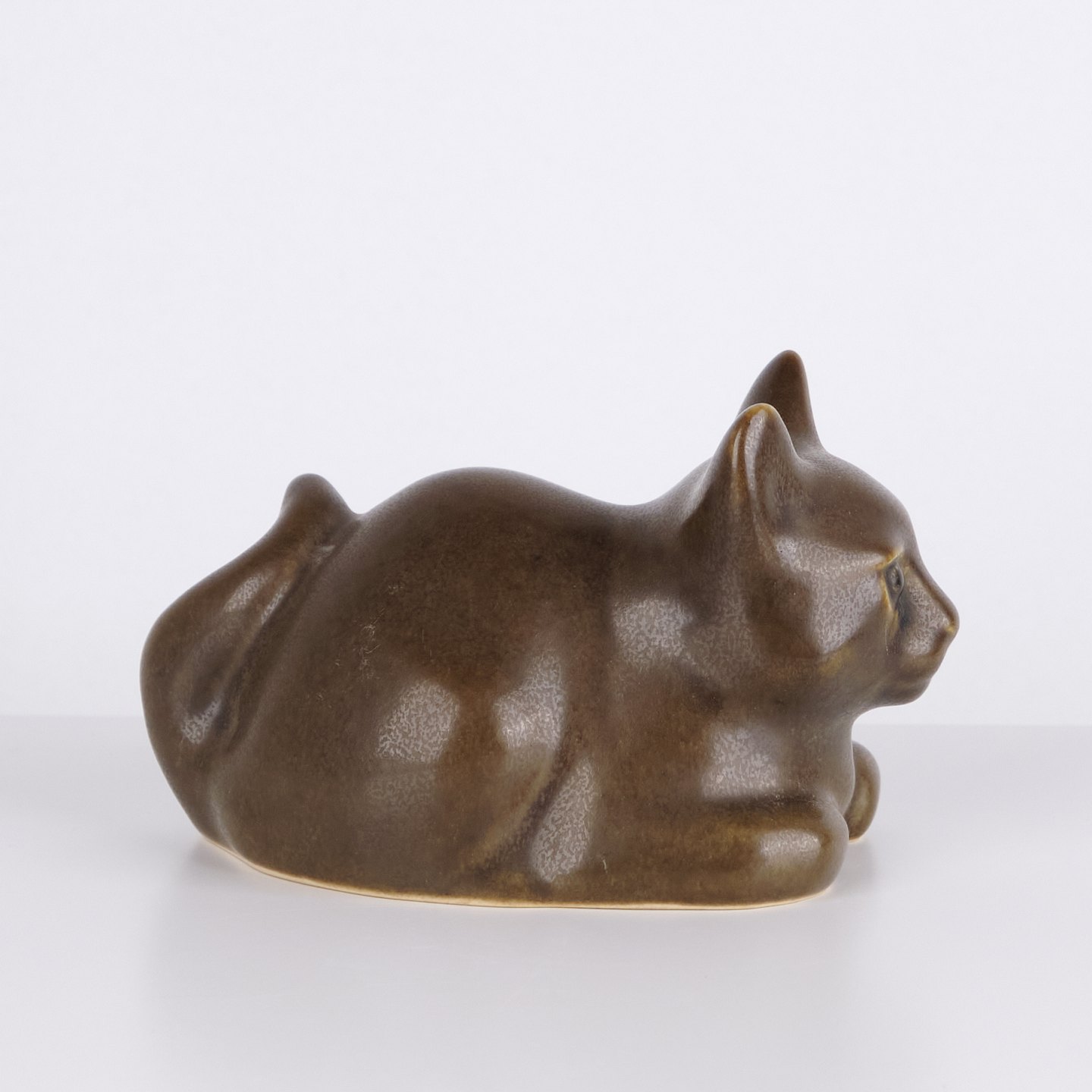 Knud Basse Kat Figur Vase i Brun Glaseret Keramik, Dansk Design 1960erne
