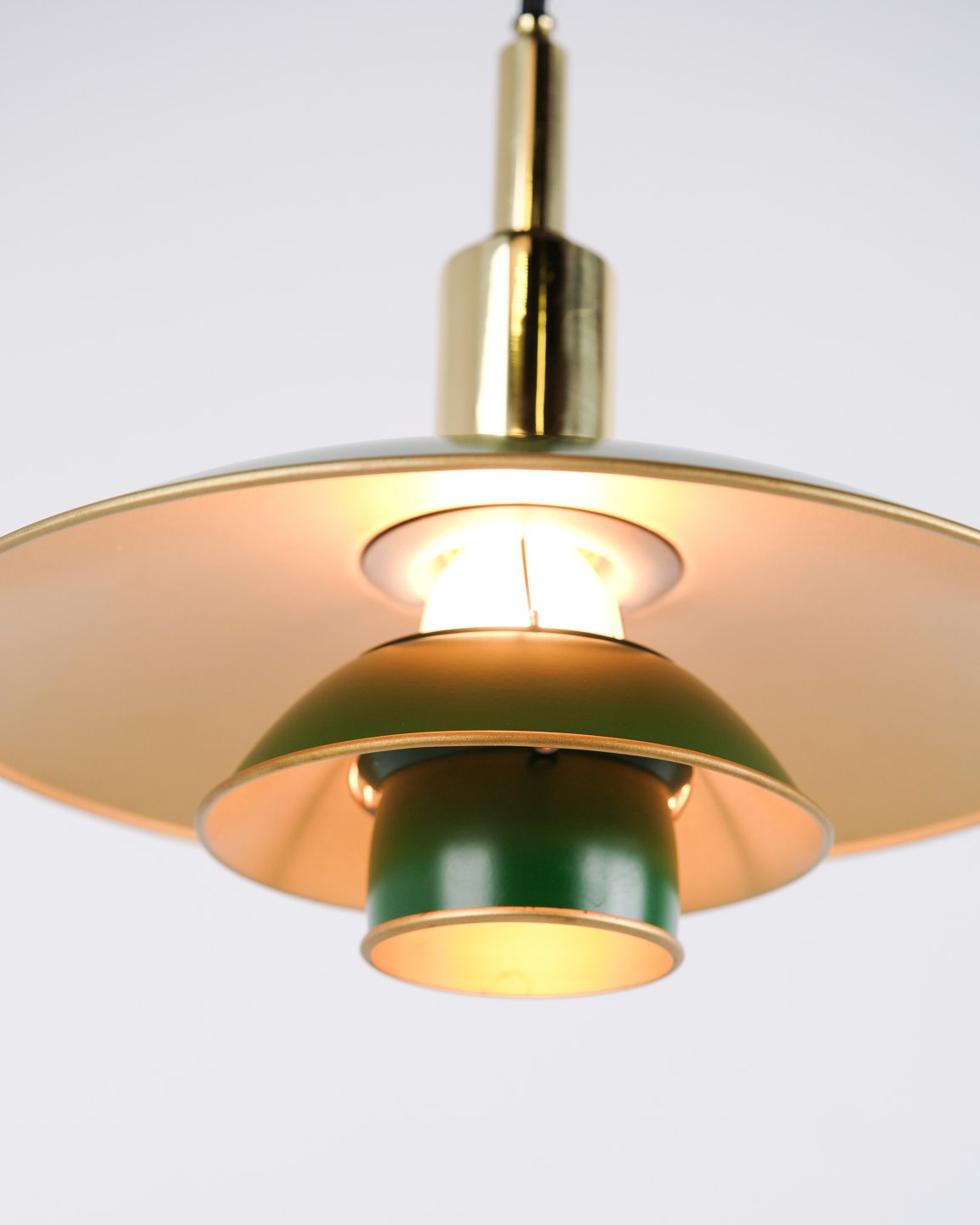 Poul Henningsen Pendel Model PH 3/2 Jubilæumsudgave med Grønne Metalskærme for Louis Poulsen