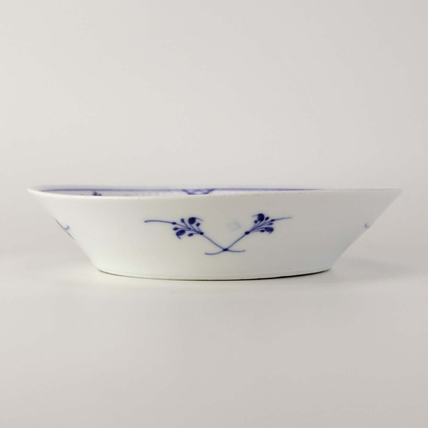 Skål til østers i kongeligt porcelæn fra stellet Musselmalet riflet.
