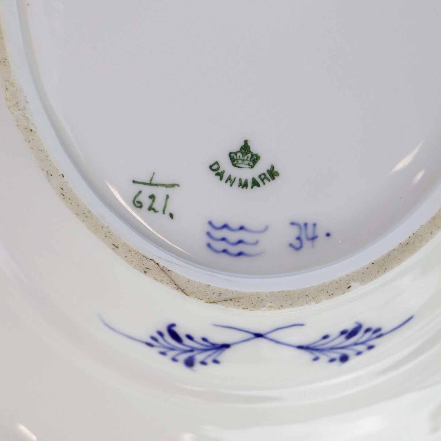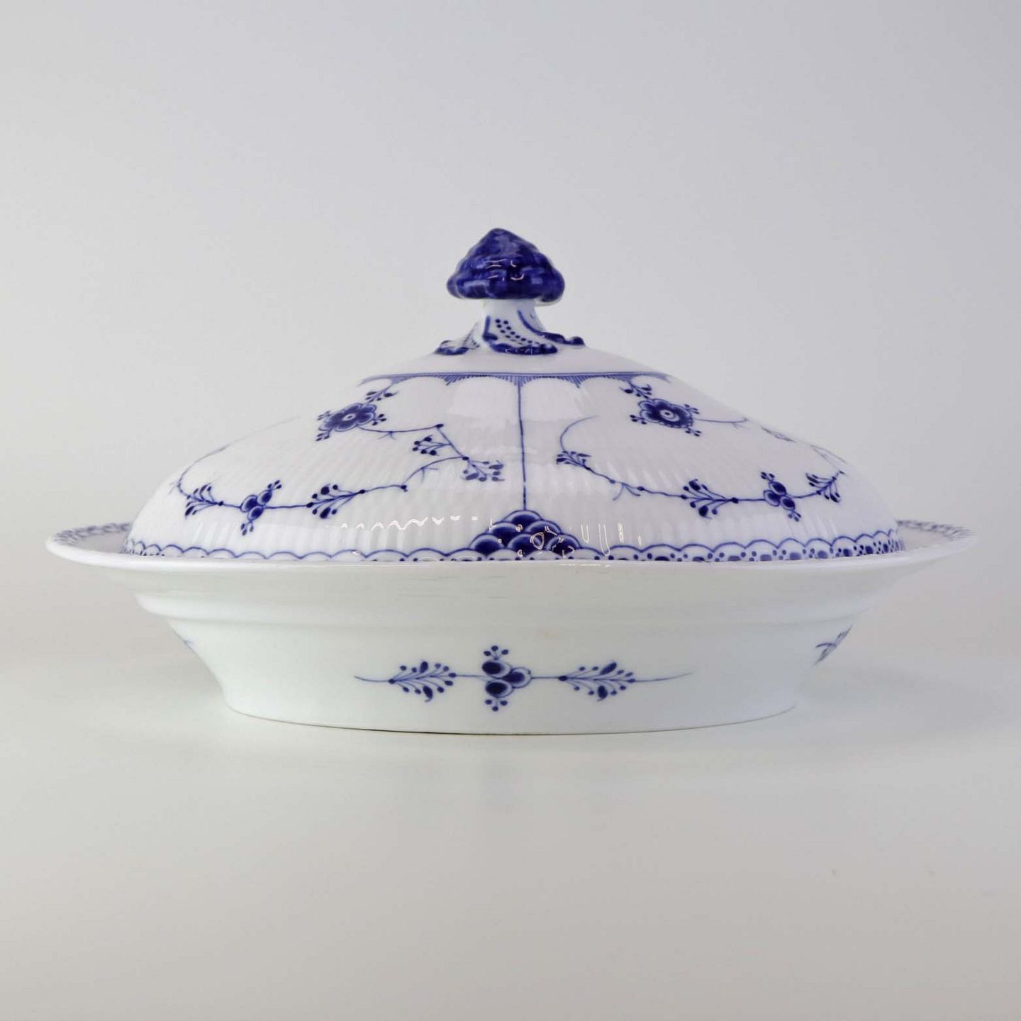 Oval terrin med låg kongeligt porcelæn fra stellet Musselmalet Halvblonde. Nr. 1/621