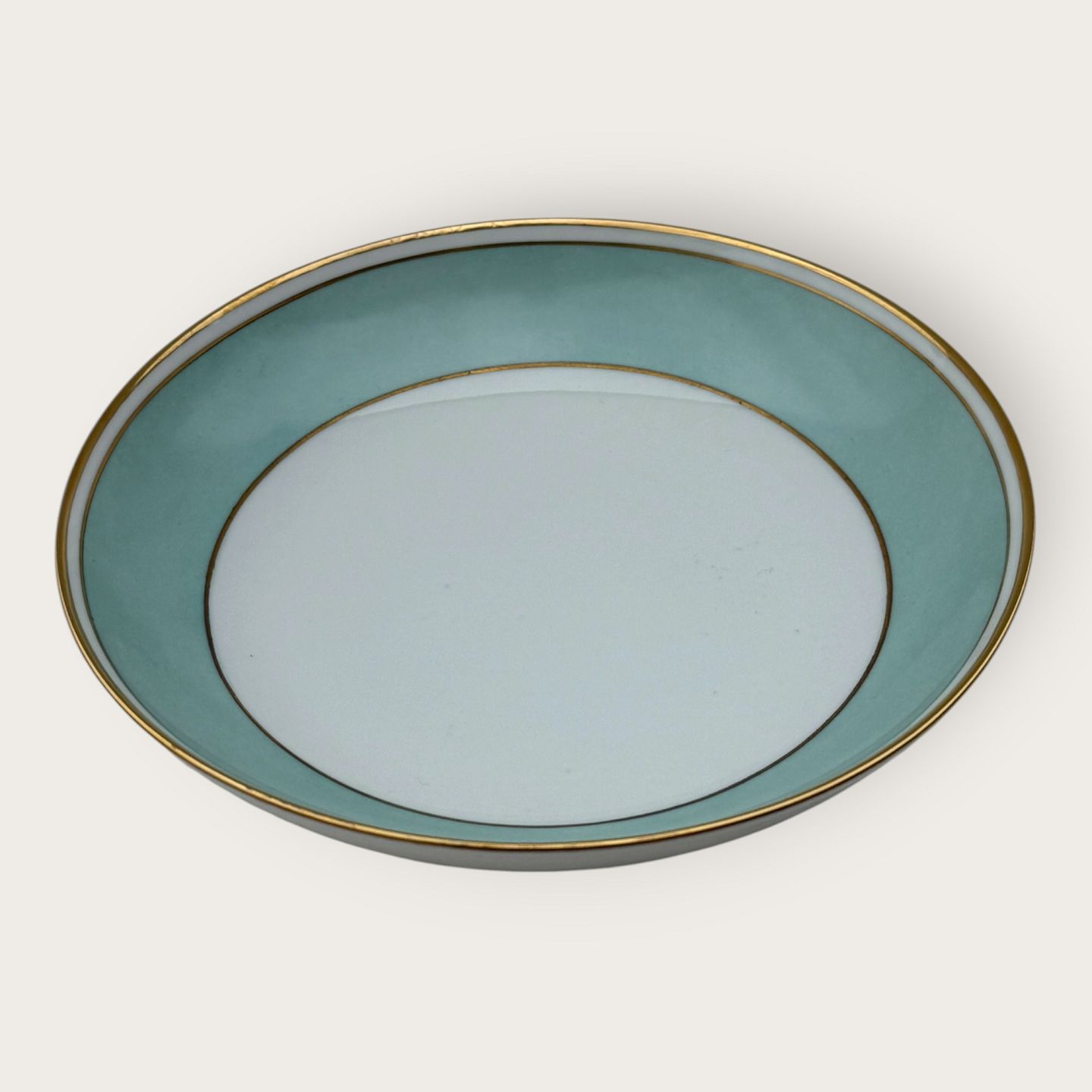 Bing & Grøndahl, Form 643 med bred turkis dekoration og guldkant, dyb tallerken, diameter 20cm, 1. sortering, *pæn stand*