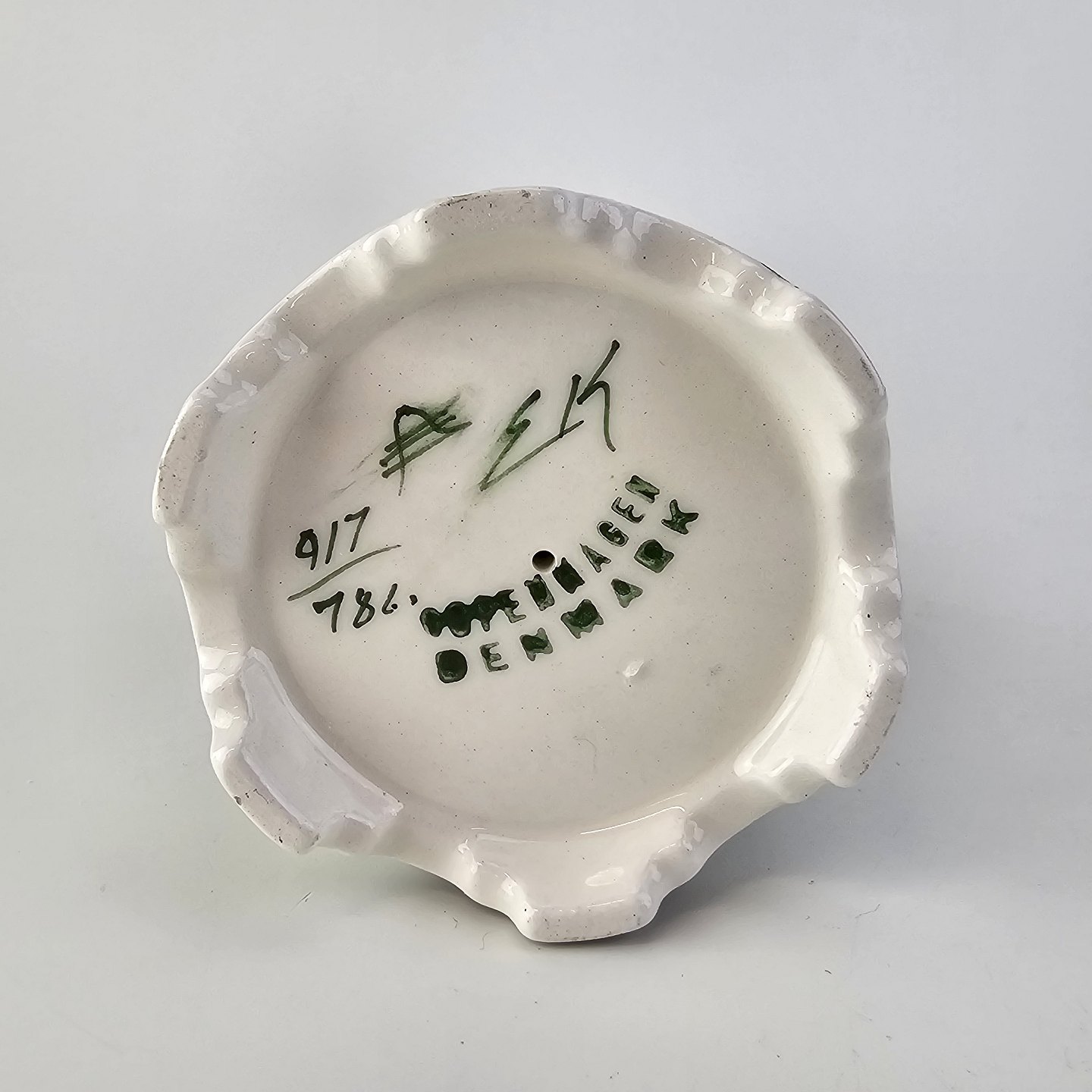 Figur i fajance med motiv af en faun på en opsats med malet blomstermotiv