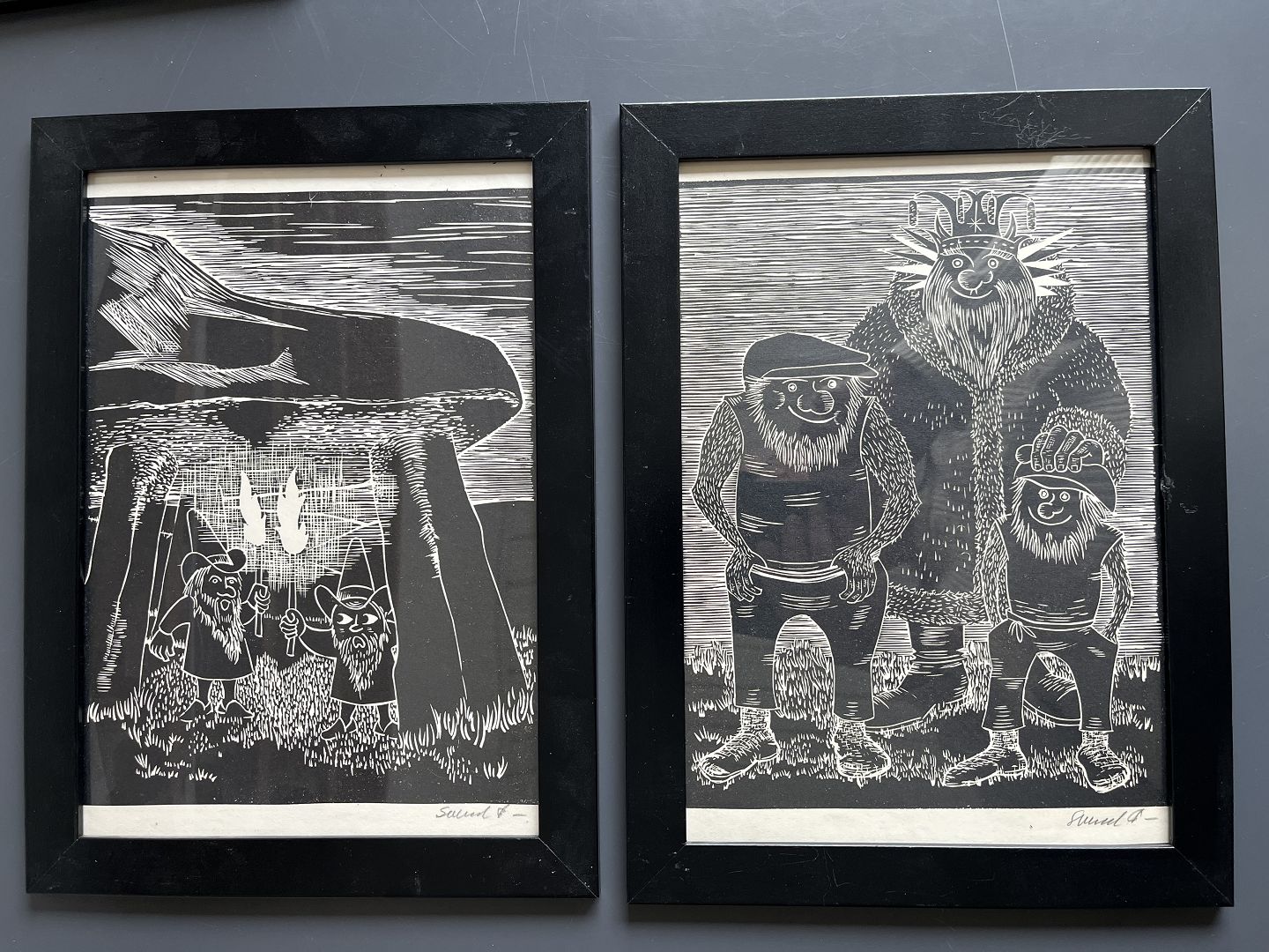 2 kompositioner med Trolde, nisser, træer, dyr mm.