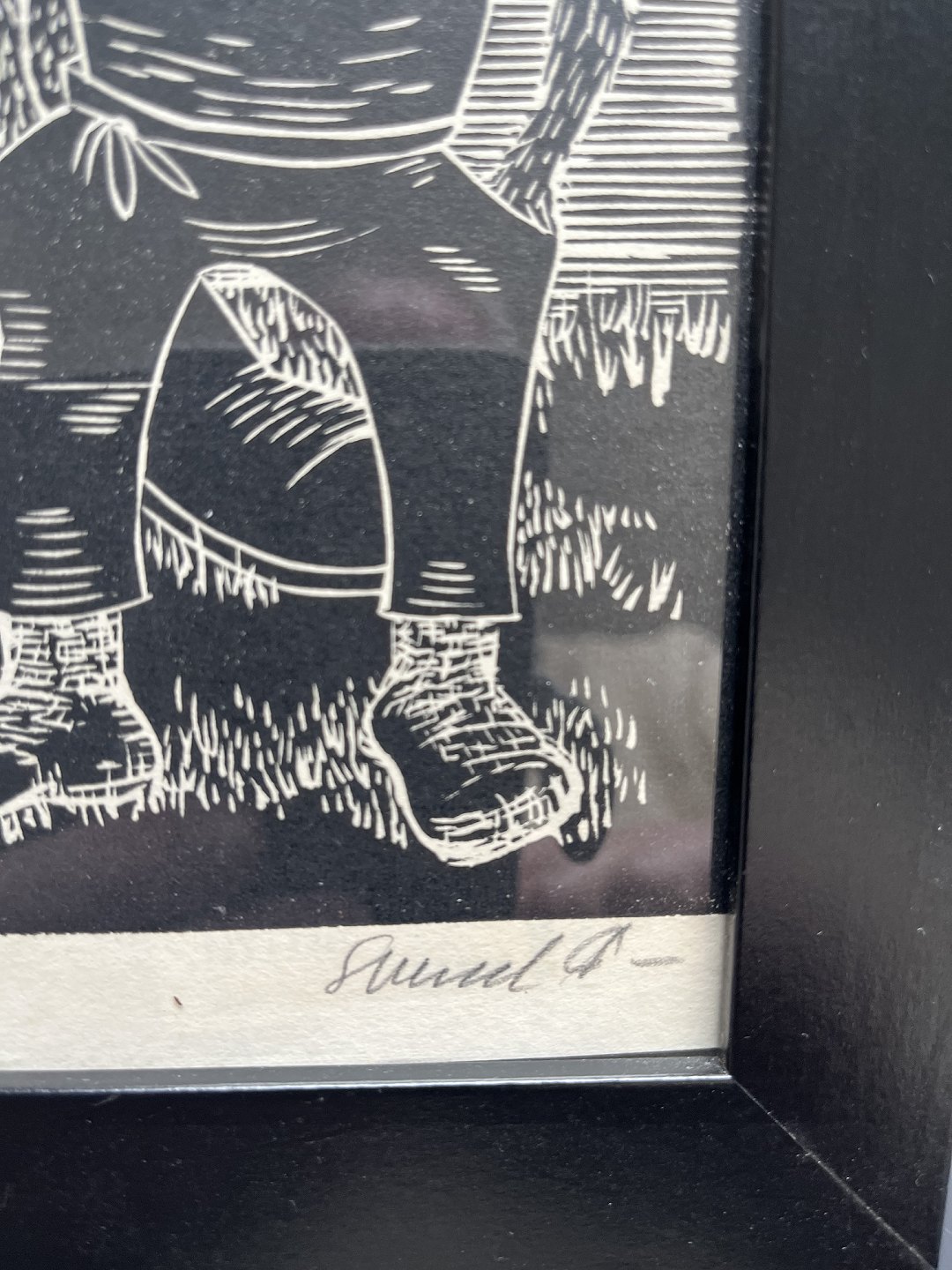 Linoleumssnit på papir.