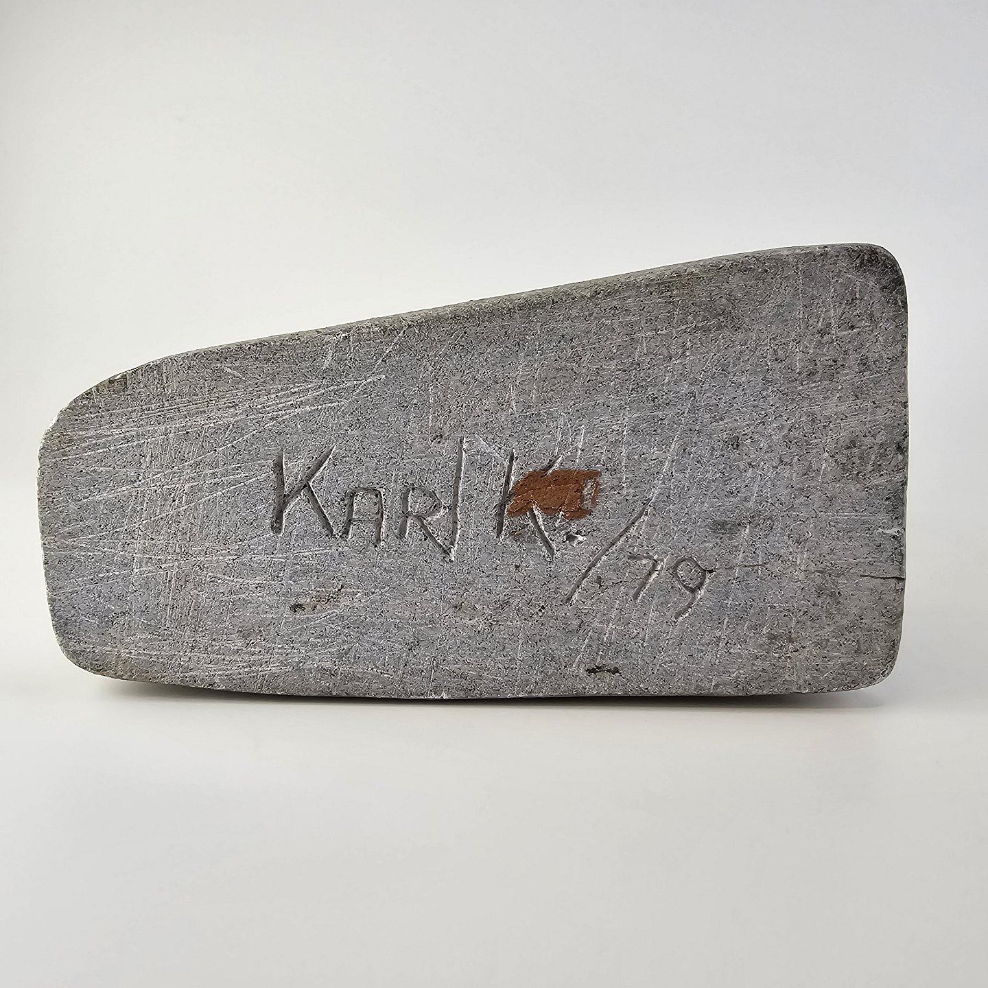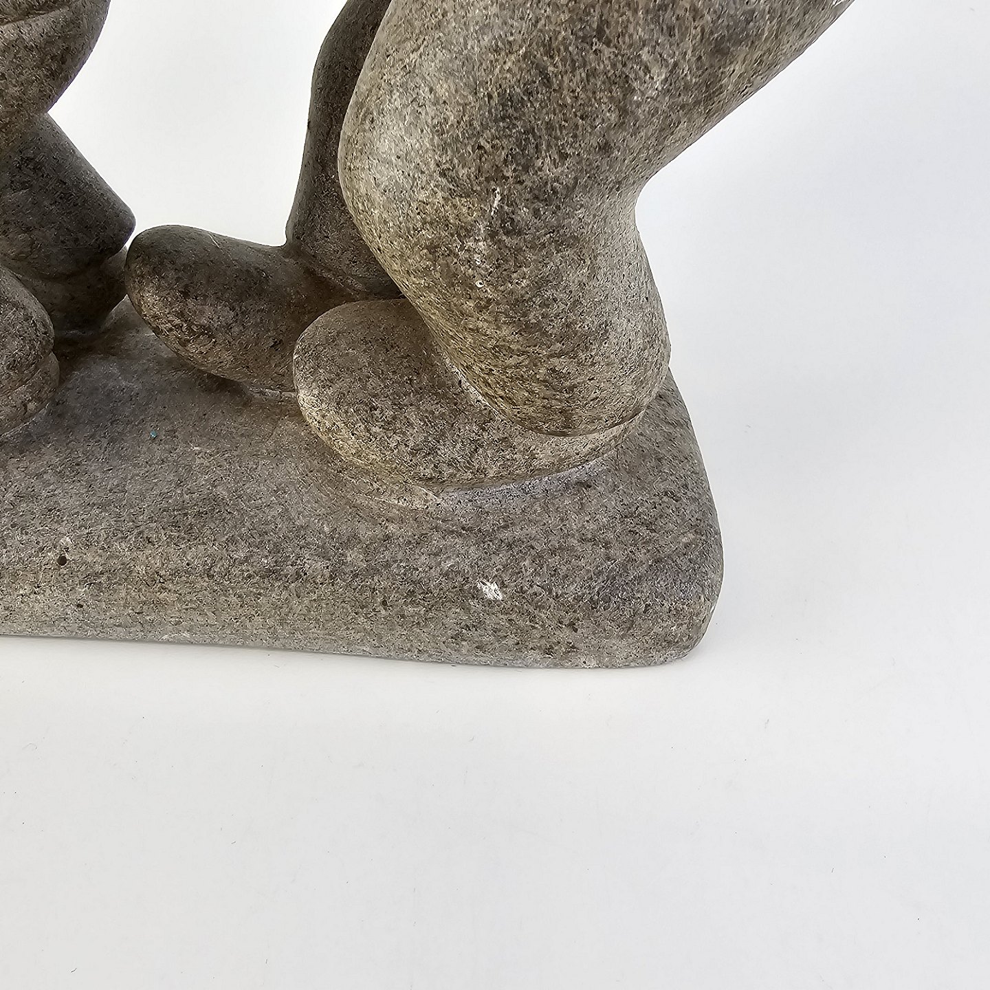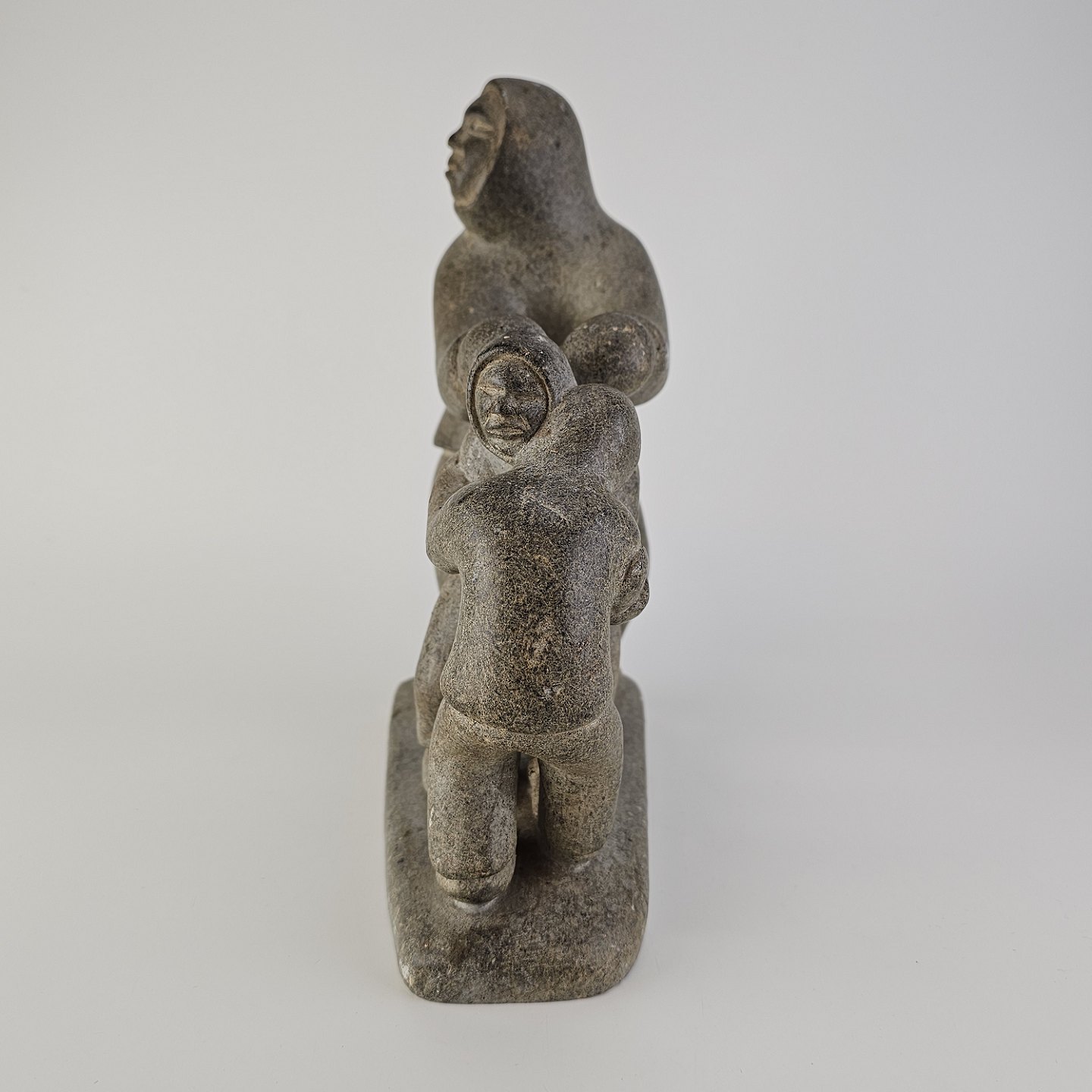 Grøndlandsk figur i fedtsten med motiv af en voksen og to børn
