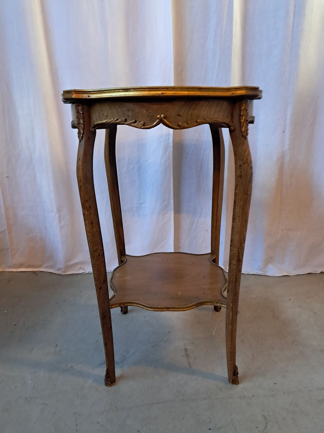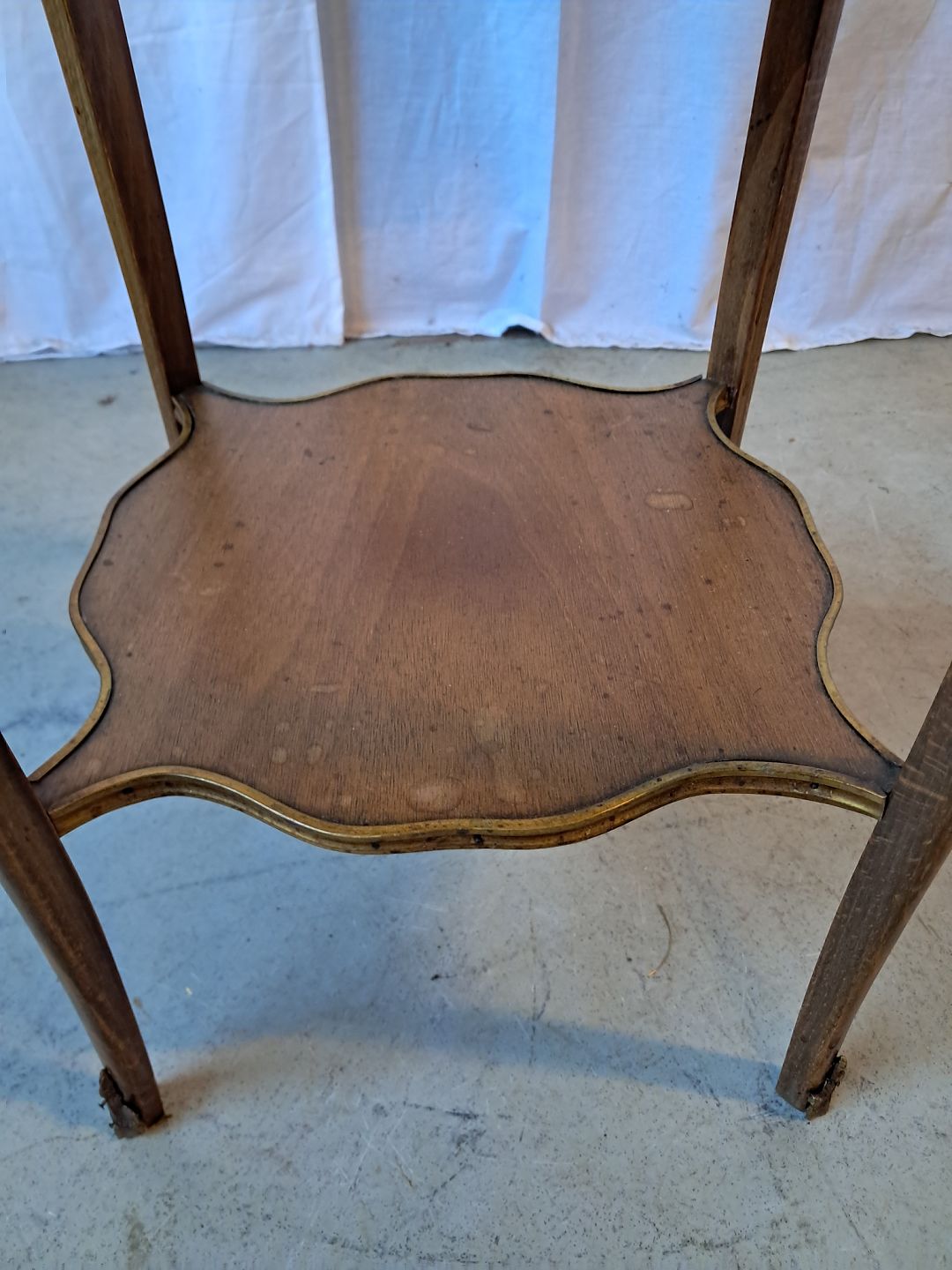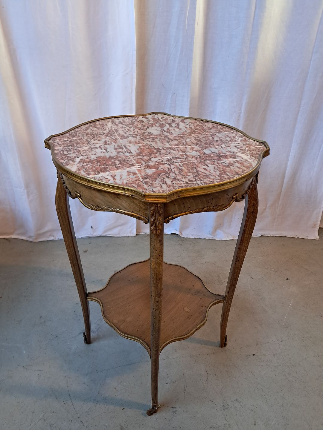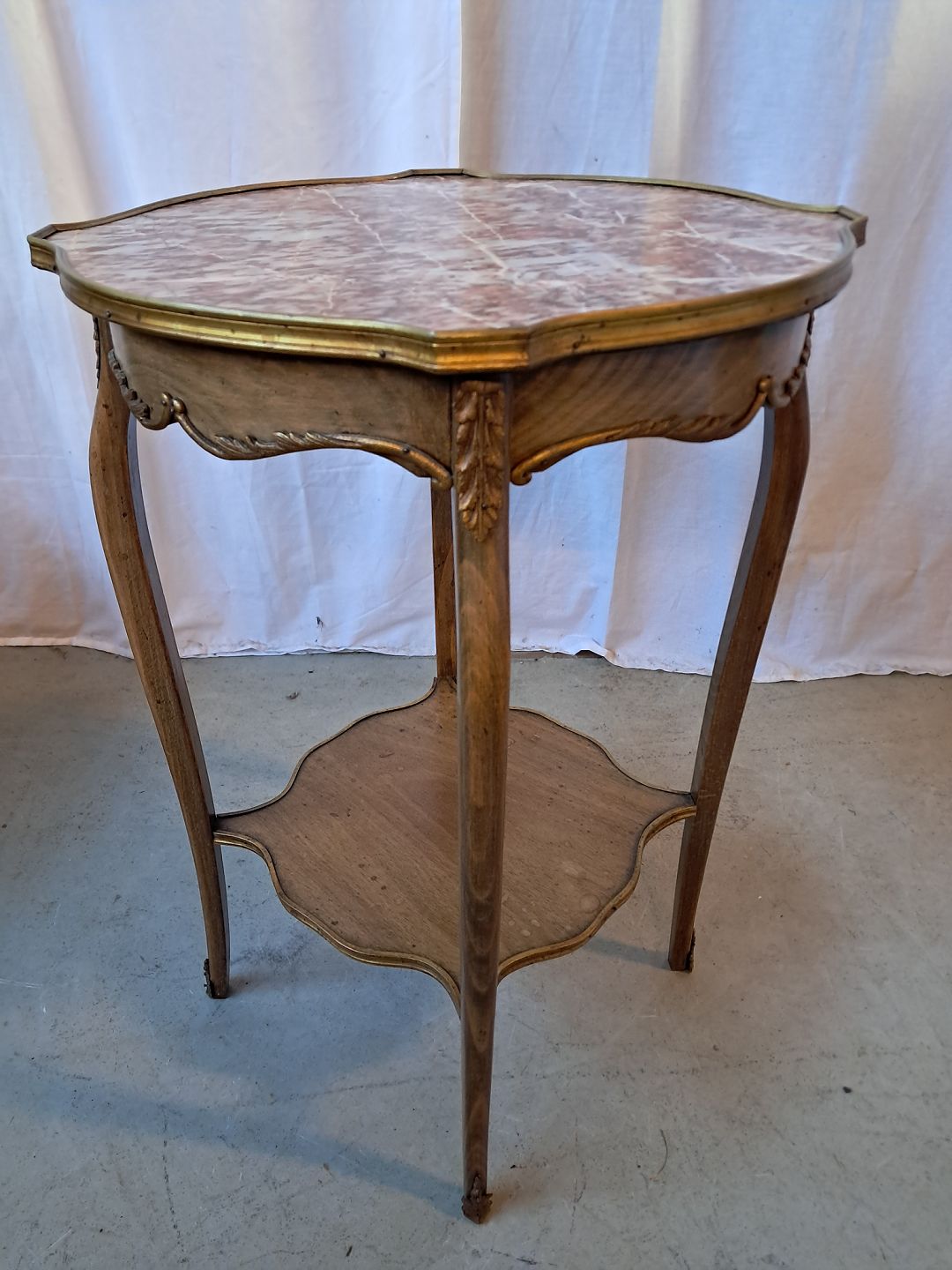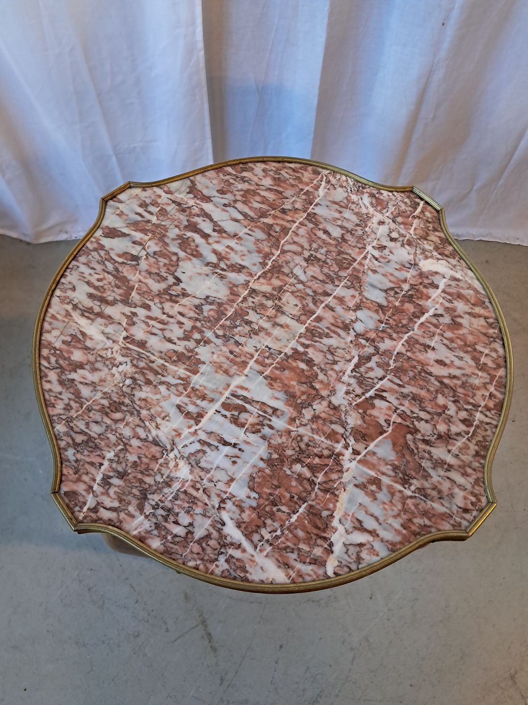 Sidebord i bøgetræ med marmorplade med metalkant, fra 1950erne.