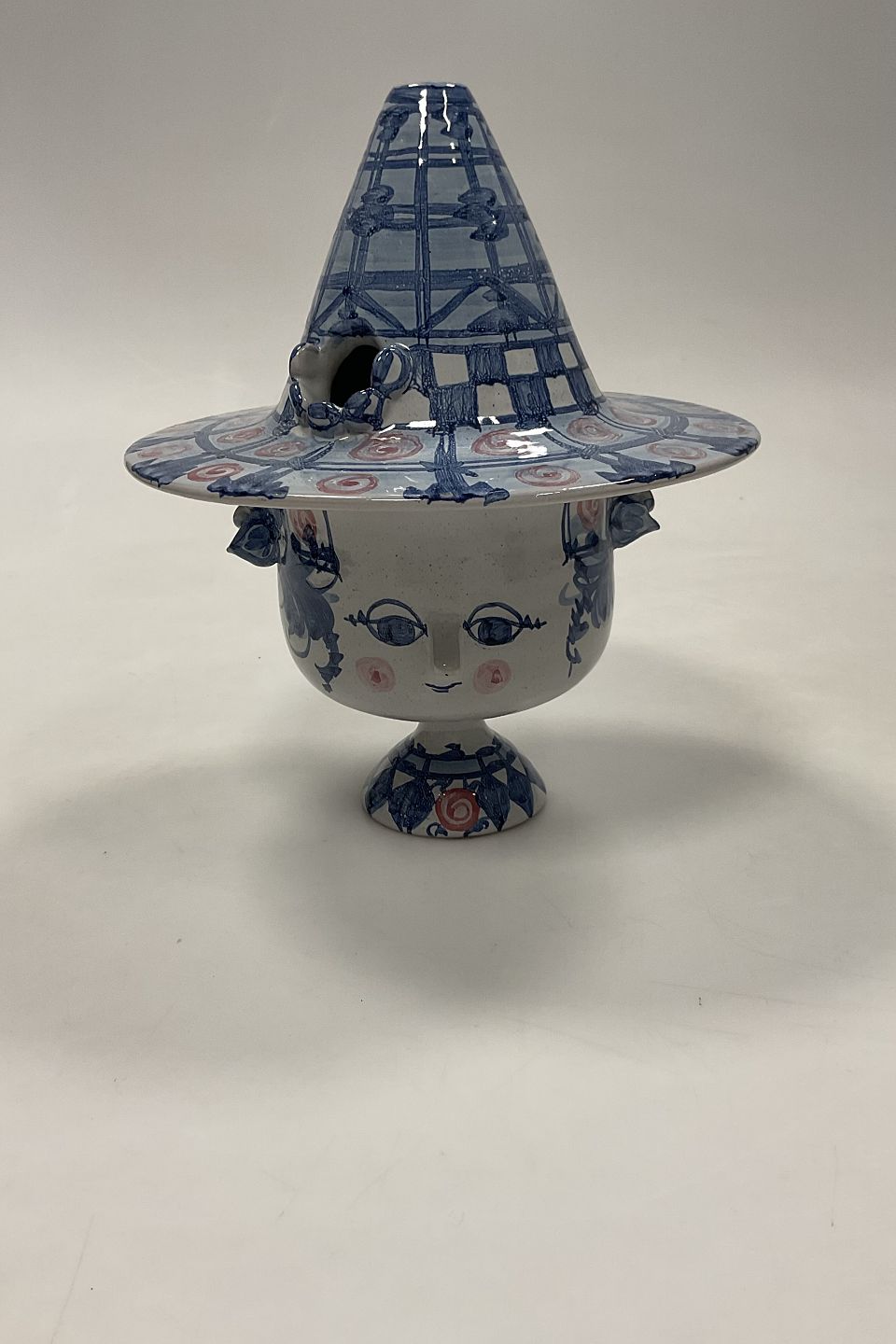 Bjørn Wiinblad Kvindehoved Vase med Hat som Låg No. V13