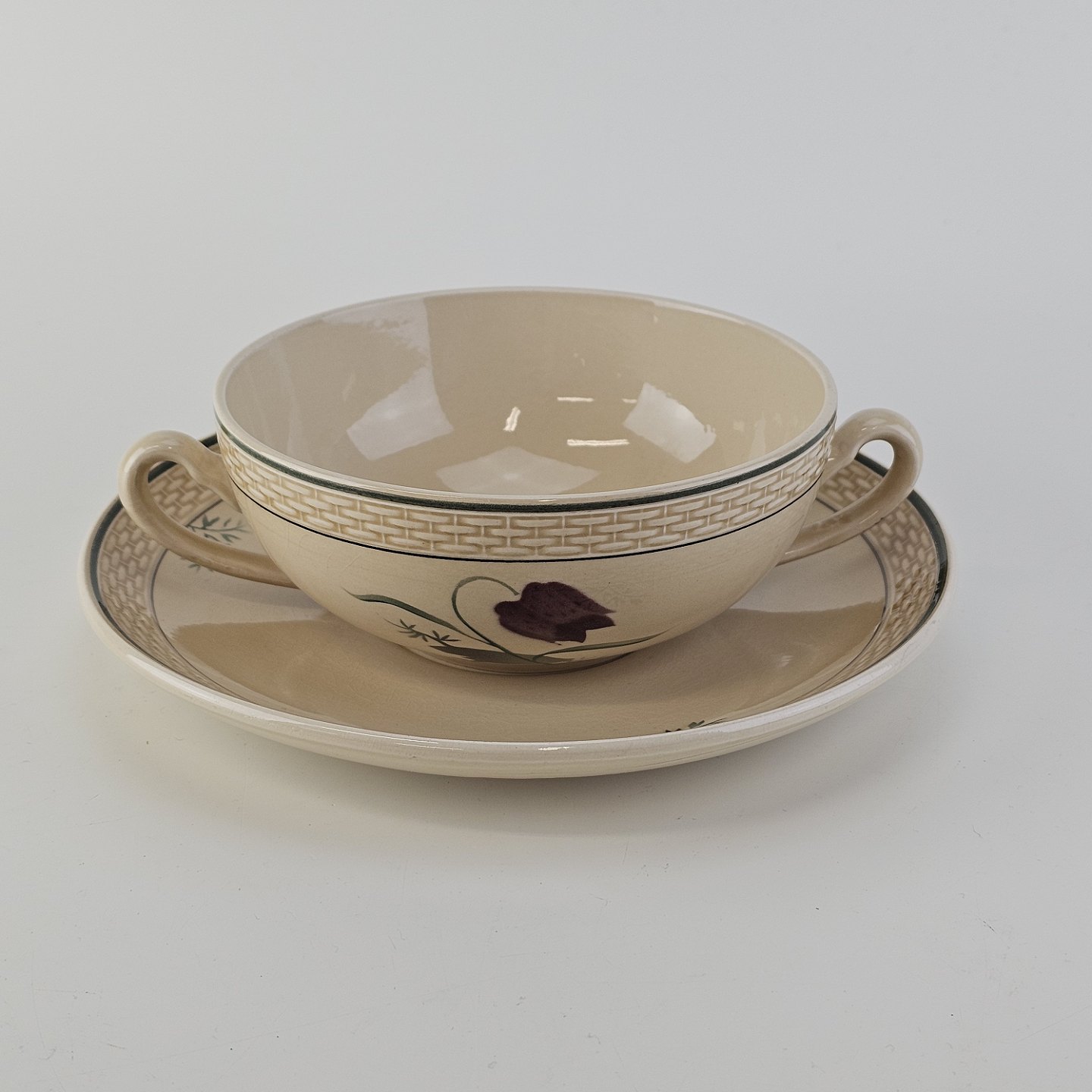 Bouillonkop med underkop i fajance fra stellet Vibeæg