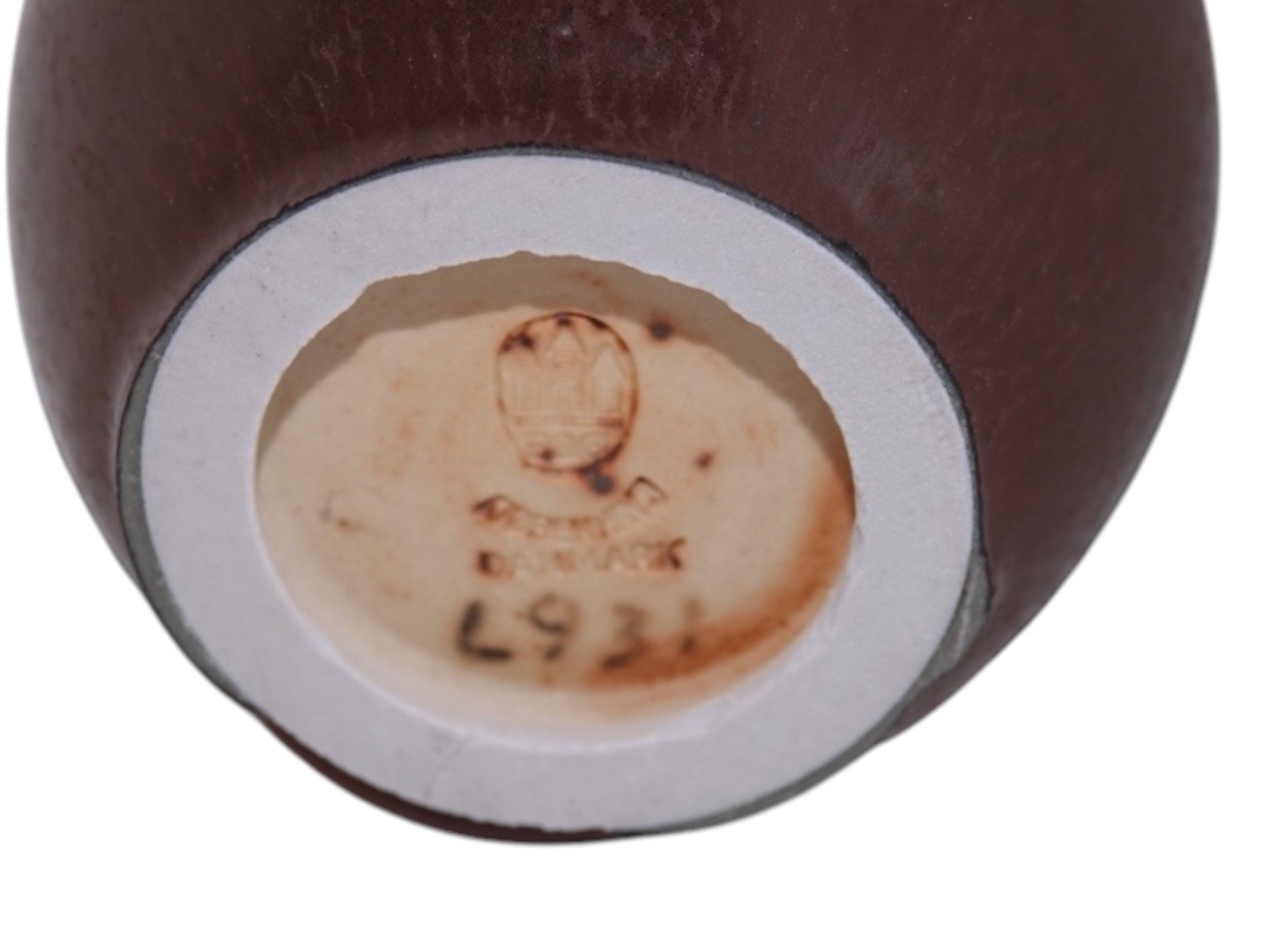 Lille Bing & Grøndahl keramikvase i enkel moderne stil med en rødbrun glasur.