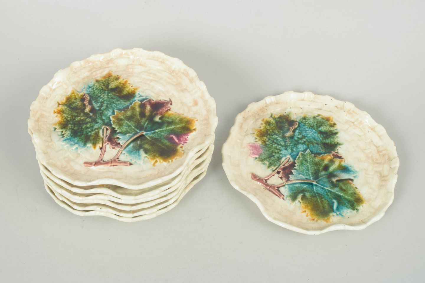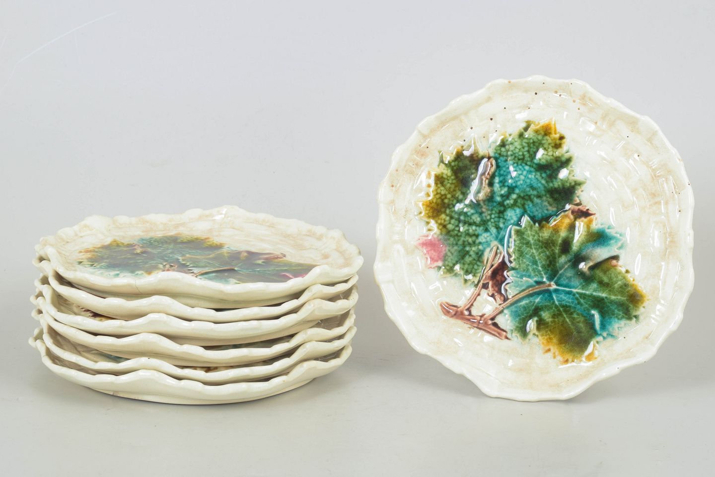 Gustavsberg majolika sæt af syv tallerkener.