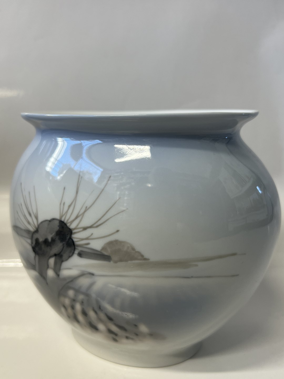 Oval Lyngby Vase med snelandskab.