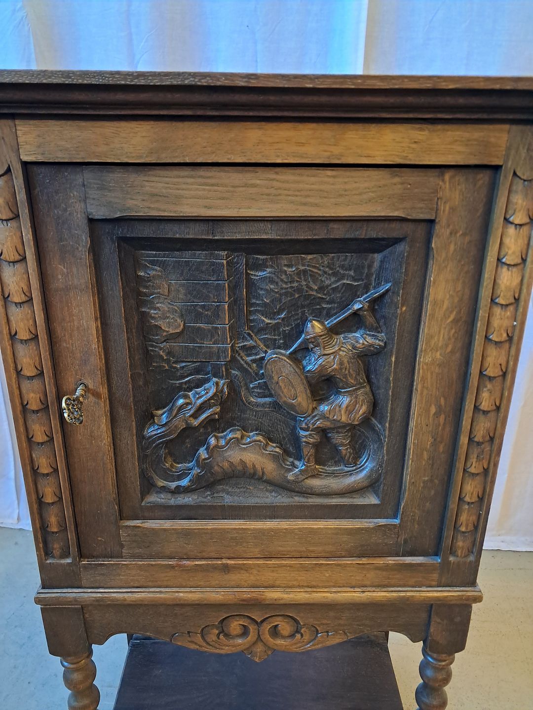 Skab i fineret egetræ, fra 1930erne.
