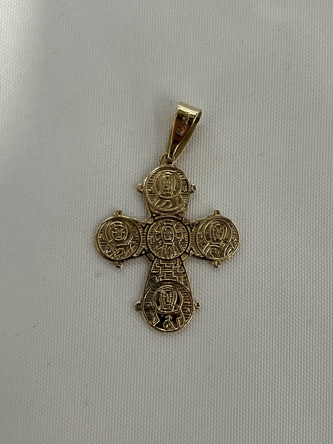 Smukt Dagmarkors i 14 karat guld, med den lidende Kristus på forsiden og de 5 "store" på bagsiden. Dagmarkorset er et traditionelt og klassisk halssmykke, der ofte gives som dåbs- eller konfirmationsgave.