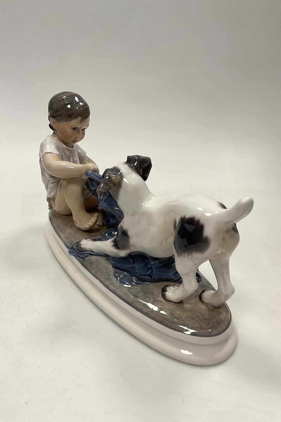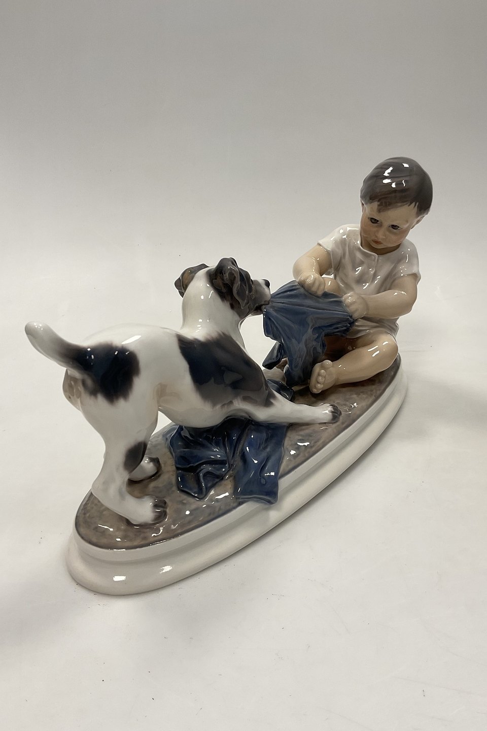 Dahl Jensen Figur af Glathåret foxterrier i leg med dreng No 1072