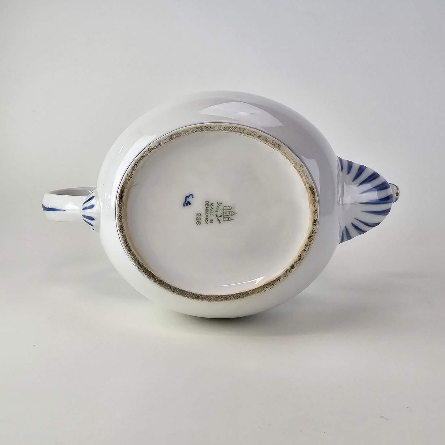 Empire er hvidt porcelæn med skelform og motiv af guirlander med blå blomster