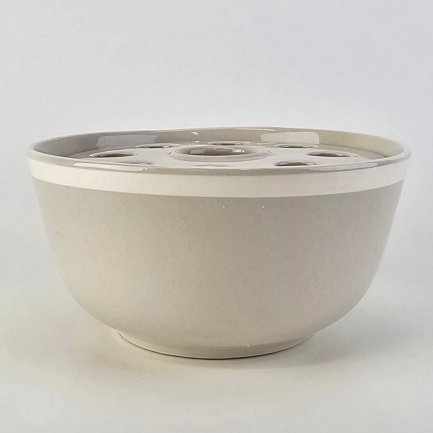 Dorrit er stel lavet på stelform D i cremefarvet fajance dekoreret med bred hvid stribe