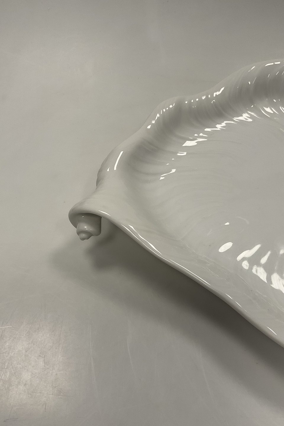 Royal Copenhagen Hvid Konkylie Serveringsfad No14191(375). I fin hel stand. Måler 38 cm x 30.5 cm. Designet af Arje Griegst