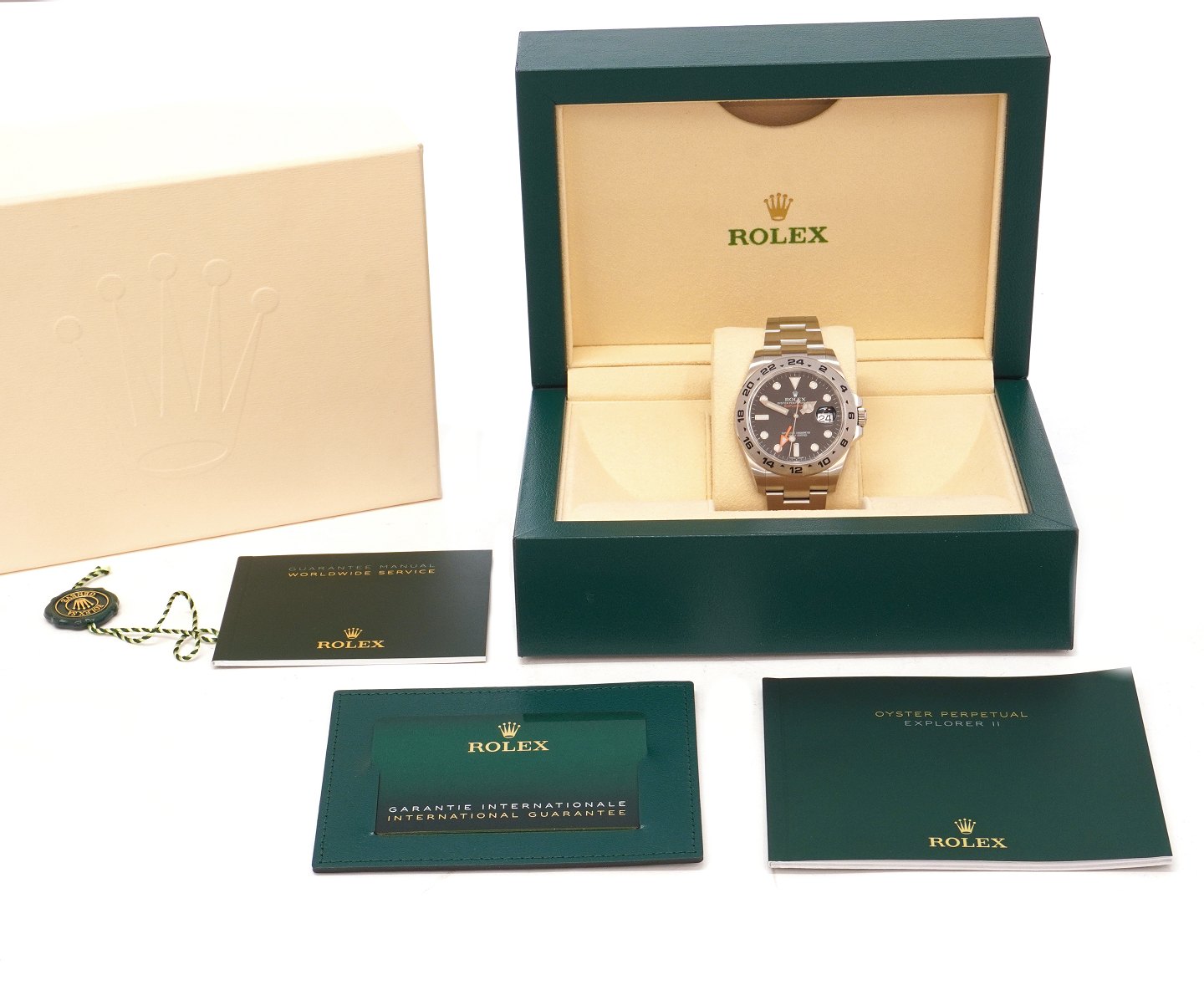 Rolex Explorer II ref. 216570 årgang 2021 med sort skive. Boks og certifikat dateret 25.04.26 medfølger. D: 42mm