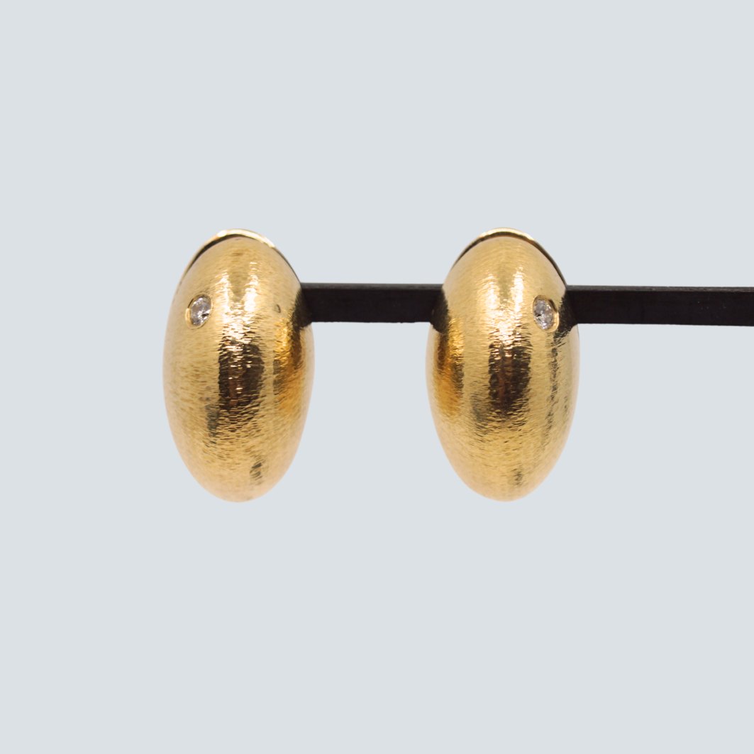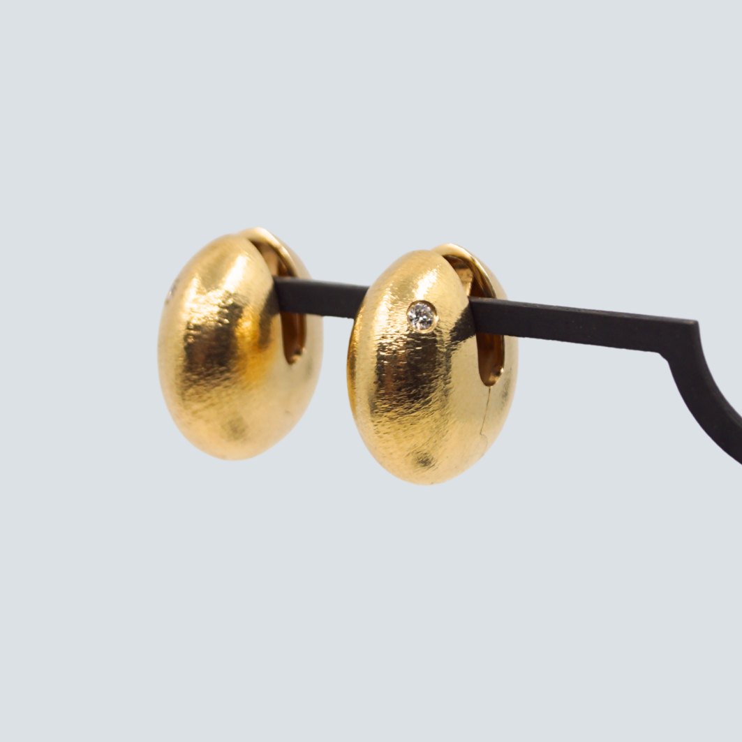 Ole Lynggaard par øreringe i 14 kt. guld. med riflet overflade. Sat med to diamanter, i alt 0.10 ct.