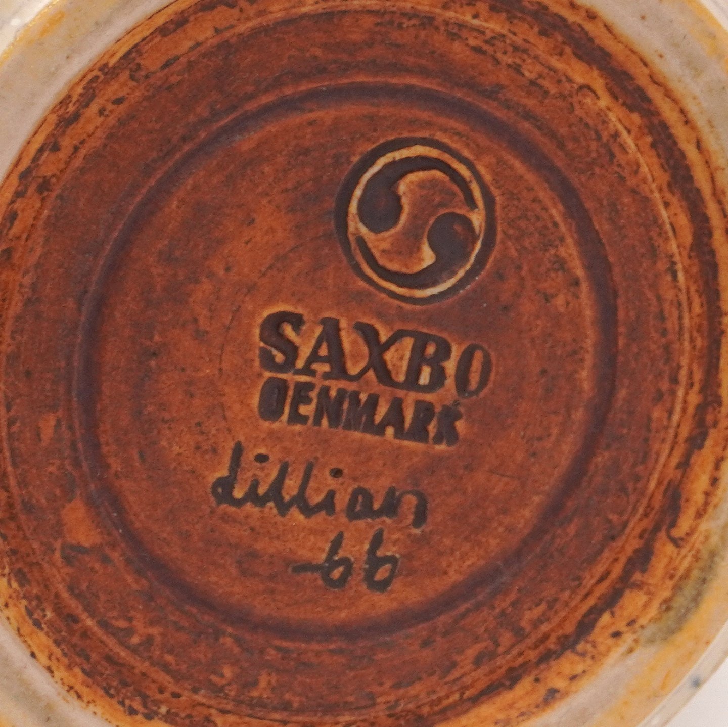 Saxbo vase i lys blå nistret glasur signeret "Saxbo Lillian -66"
