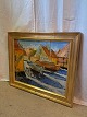 Dekorativ , gammel fransk glas sifon i blå farve med graveret skrift på ...
